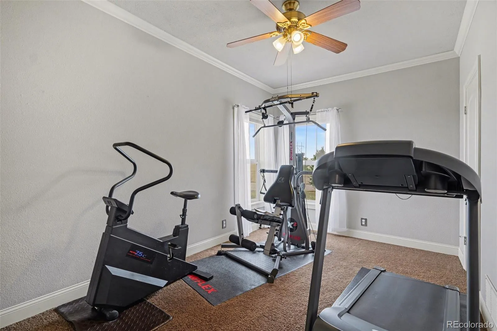 Step outside to the 40′ x 12′ deck, a perfect spot to take in the open landscape and mountain views after a day with the horses. Additional improvements include a recycled asphalt driveway installed last year and owned propane tanks (500- and 1,000-gallon).