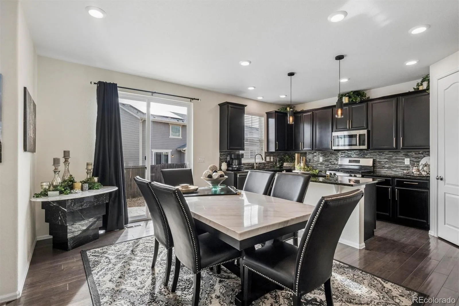 Incredible Price and Opportunity!! Welcome to this Impeccably cared for home located in the highly sought-after Sierra Ridge community! Gently lived in, this home features a thoughtfully designed open concept floor plan and is decorated to perfection! Additional upgrades include LVP flooring at the entry, kitchen and dining area. Granite countertops, 42″ Maple/Espresso cabinetry, kitchen Island, large pantry, SS appliances and a gas cooktop make up this classy kitchen! Half Bath on the main floor, as well as As a separate workspace adjacent to the kitchen which allows for many different possibilities. Upstairs features the primary bedroom retreat and ensuite bathroom w/ double vanity and tile flooring. Two additional bedrooms, a large full bath w/double vanity and a laundry room complete the upper level. This total of 2786 sf includes a full unfinished basement with 9 ft ceilings, rough in plumbing and egress windows just waiting for your own creative touch (and additional value)!! Enjoy evenings outside on your large stamped concrete patio, which also includes a low maintenance backyard with artificial turf. Seller owned Solar panels are a bonus and allow for energy savings! Quiet location, yet conveniently located to E470, Denver Tech Center, Shopping and Restaurants. This home is the perfect balance of class, comfort and convenience! Buyers and Buyers Agents please do your due diligence on taxes, HOA amounts, etc.