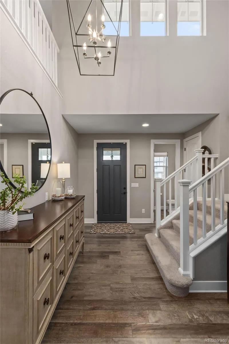 Step inside to a striking two-story entry that sets the tone for the home’s elevated style. Rich luxury vinyl flooring flows seamlessly throughout, complemented by 8-foot interior doors, upgraded lighting, bespoke blinds, and designer drapery that add warmth and sophistication at every turn. The heart of the home is the expansive kitchen, featuring a coveted oversized island and an abundance of cabinetry as well as a walk-in pantry, designed with both entertaining and everyday living in mind. The open layout effortlessly accommodates lively get-togethers as well as cozy movie nights with loved ones.This thoughtfully upgraded 4bedroom + loft, 4-bath home blends style and functionality, with custom California Closet built-ins that elevate organization while adding a refined, cohesive touches throughout..Located just steps from the community pool, park, and miles of scenic walking and hiking trails, this home offers a lifestyle as inviting as its interiors. With easy access to both Lone Tree and charming downtown Parker, you’ll enjoy the perfect balance of convenience and connection.