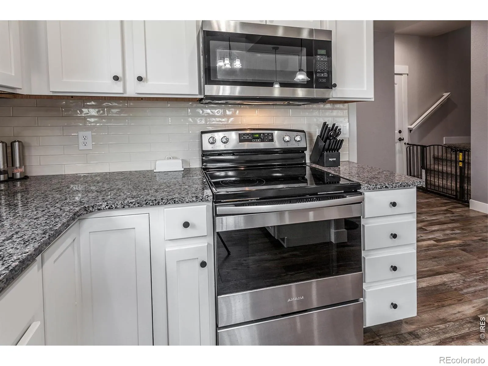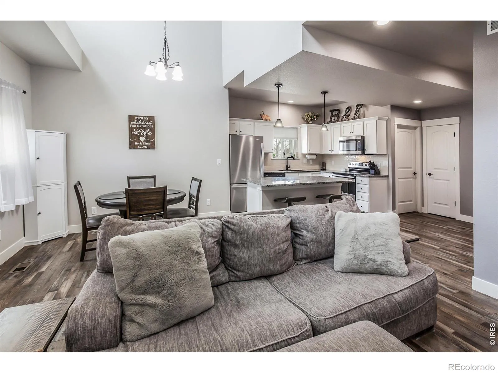 Fantastic Eaton townhome available now! Chic, modern & move-in ready! Bright & open main level features LVP flooring, nice living & dining spaces, crisp white kitchen w/granite counters, SS appliances, island & tile backsplash. Inviting primary suite has spacious walk-in closet & private bath. Full UF basement offers potential for future expansion & great storage solutions. End unit, 2 car garage. Great location minutes from the fantastic Eaton Rec Center, Eaton High, grocery & dining!