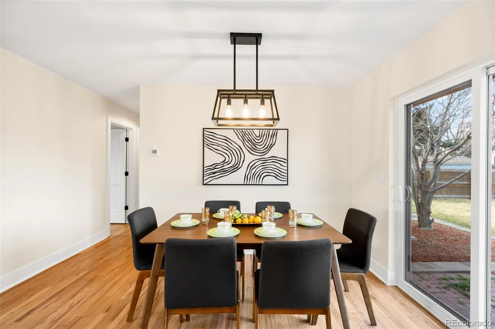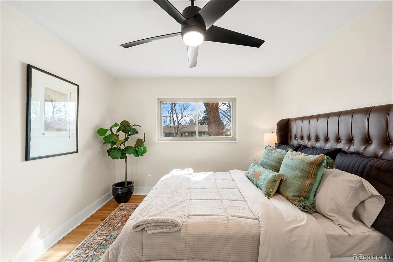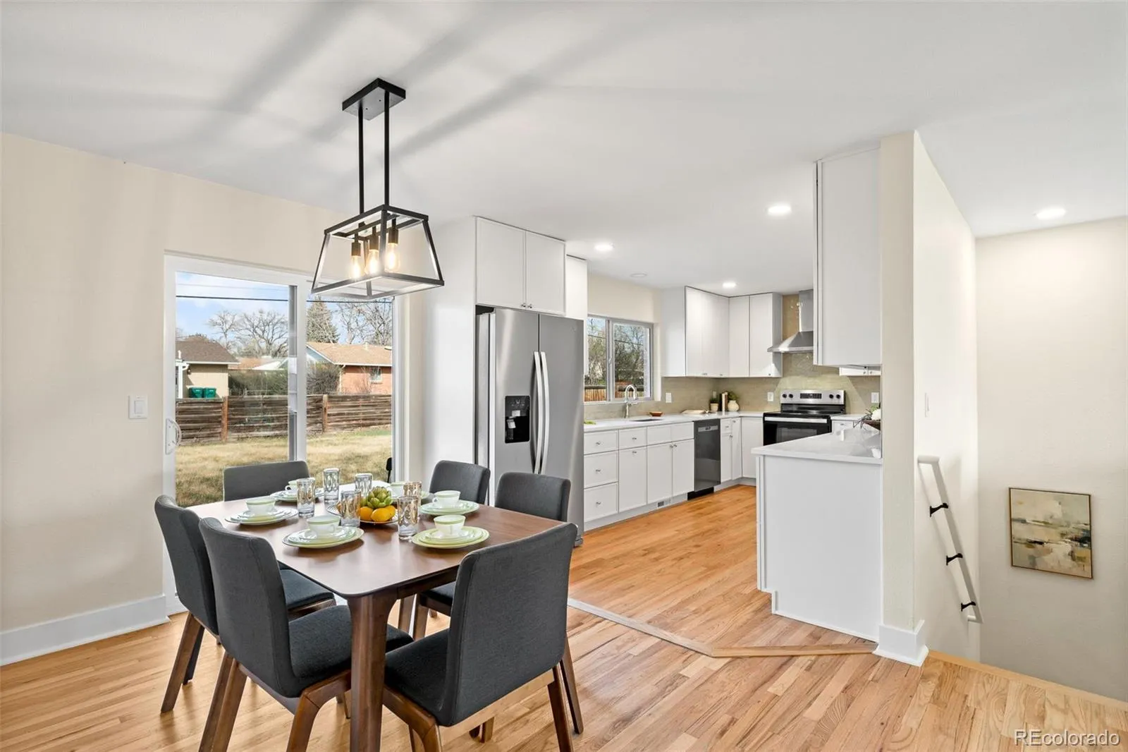 This beautifully remodeled ranch home in the heart of Meadowlark Hills is a Lakewood gem with a quiet, vintage suburban feel without sacrificing quick access to Denver or the mountain. Experience this thoughtfully remodeled ranch home, where the open-concept living space flows effortlessly into a crisp, modern kitchen and dining area, while all three main-floor bedrooms are tucked quietly to one side of the house. The main level features refinished solid oak hardwoods, large front windows and a kitchen layout optimized for both daily life and hosting, boasting ample storage and generous counter space. The dining room serves as a central hub for gatherings, offering a seamless transition to a massive, west-facing backyard—perfect for enjoying Colorado sunsets and outdoor entertaining. Among the three main-floor bedrooms is a tranquil primary suite featuring a private ensuite bathroom and a ceiling fan for year-round comfort.