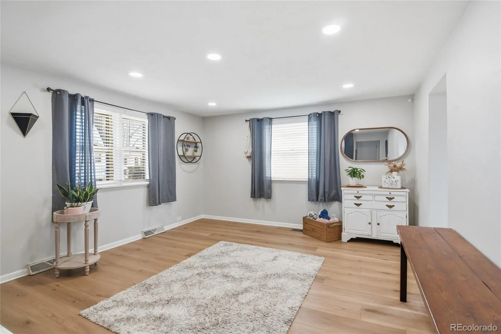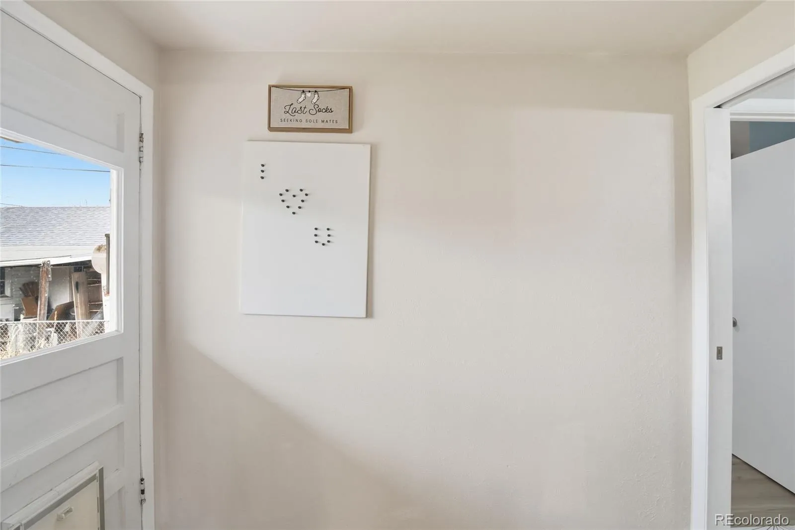 Inside, you’ll find a bright, inviting layout featuring new engineered wood flooring and custom built-ins throughout. The sunny kitchen offers newer appliances, a sleek faucet with glass washer, and a stylish butcher block coffee bar, perfect for starting your day. A built-in bench with cubbies and coat rack creates a functional drop zone, while a dedicated workspace near the kitchen adds flexibility. The remodeled bathroom adds a fresh, modern touch that buyers will appreciate.