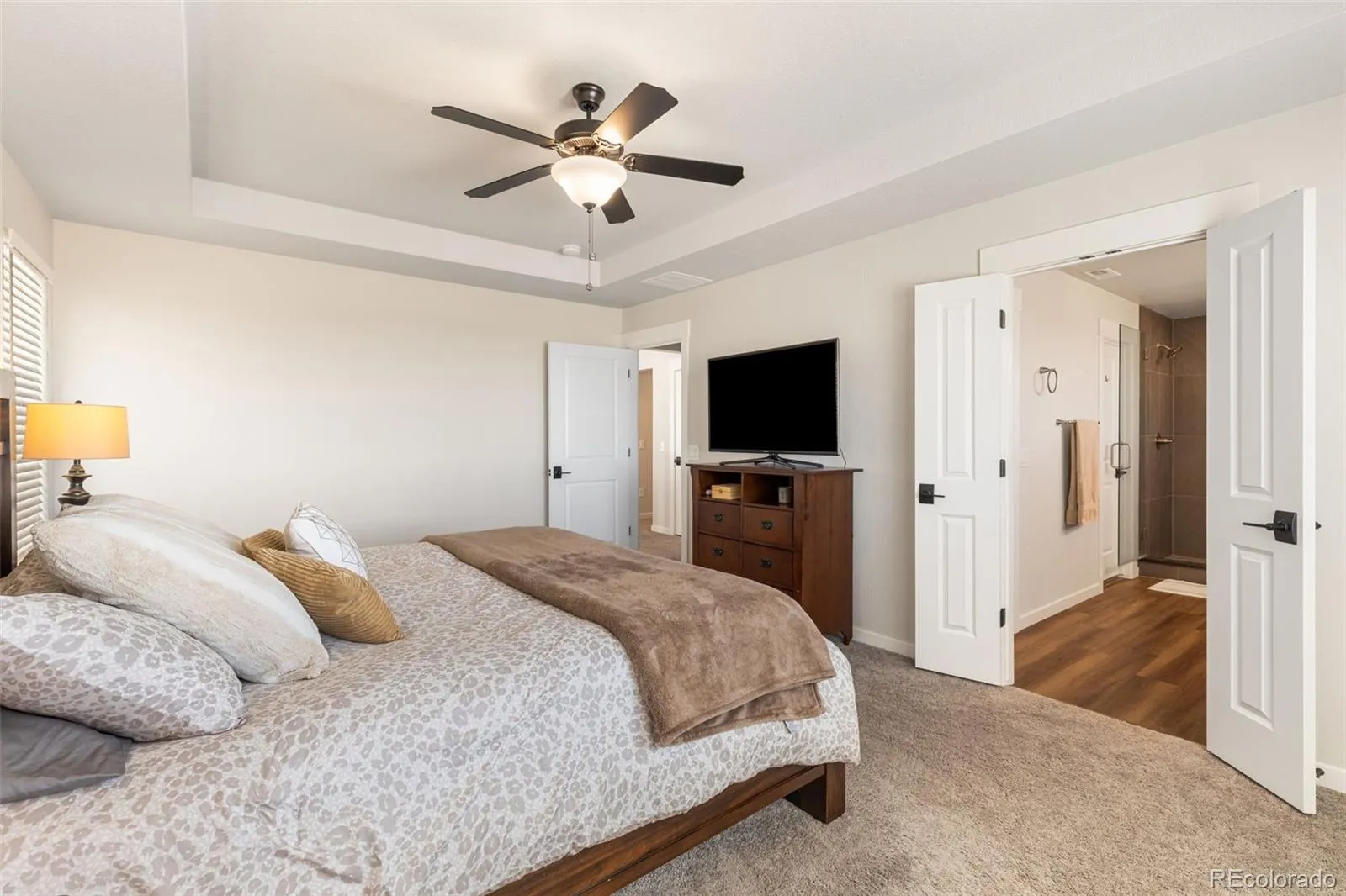 The main level encompasses a formal office (which could easily be converted to a main-level bedroom), living room, dining area, eat-in kitchen (featuring a gas range, stainless steel vent fan/appliances/sink, granite countertops, cabinet hardware, large island, and a walk-in pantry), powder bathroom, and access to the garage and backyard. Upstairs you will appreciate a loft that could be converted into another bedroom, the expansive primary suite (complete with an attached en suite, walk-in closet, and Pikes Peak/mountain views), two more bedrooms, a full bathroom, and the laundry room. The finished basement offers the perfect setup for multi-generational living or overnight guests (highlighting another bedroom with a walk-in closet, another full bathroom, a family/rec room perfect for entertaining, utility/storage room, and under stair storage).