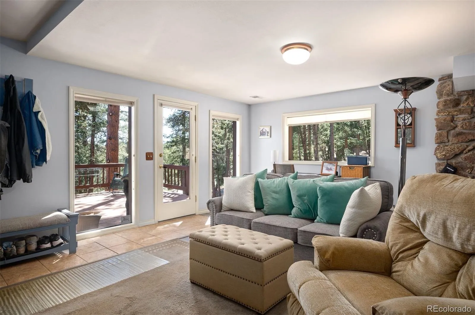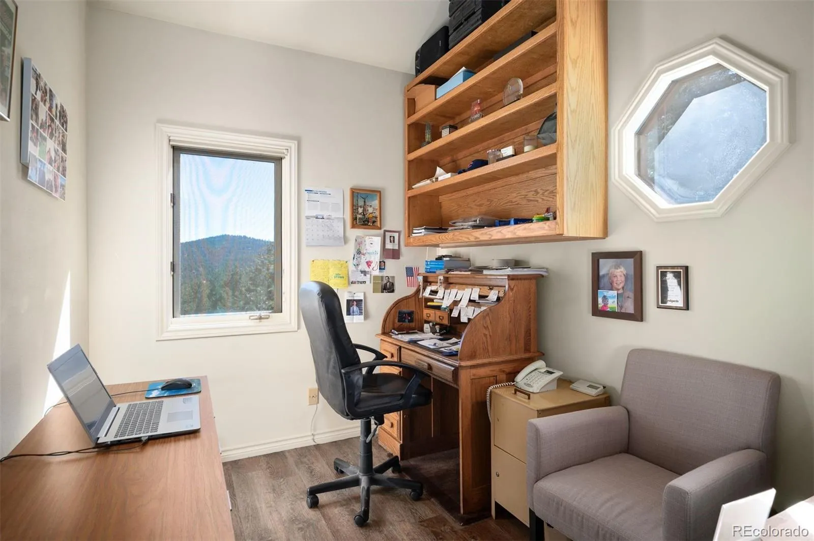 Tucked into the Foothills of the Rocky Mountains your shite awaits! Majestic sweeping mountain views captivate you from the moment you enter. Imagine sitting on the front deck sipping your morning cup of coffee soaking in the sun and taking in the view. The open main level floor plan is a great space for entertaining guests. The great room boosts vaulted ceilings, reclaimed barn-wood flooring and fireplace. Imagine cozy days relaxing in this room around the fireplace and taking in the view. The kitchen is positioned perfectly to access the backyard patio area and is the perfect spot for outdoor entertaining. The main floor has 2 bedrooms and the laundry area located for convenience. The upper level primary suite is a private sanctuary with plenty of room for a California King size bed plus additional suite furnishings. The upper level primary suite also has its very own private office that could also be used as an additional walk in closet if desired. The walkout lower level includes an additional recreation room, bedroom, full bathroom and storage area. Oversized 2 car garage with plenty of room for additional storage plus a detached shed that is perfect for storing yard equipment and additional personal treasures. The driveway has plenty of space for parking additional vehicles and is south facing. Home has been very well cared for and literally gives you the feeling that you are living in the middle of a National Park. Within 7 minutes of Downtown Evergreen and within 10 minutes to Conifer, the home is located on all paved county maintained roads. Hiking and biking trails are nearby. If you are looking for your majestic and peaceful mountain sanctuary your search is over Welcome Home!