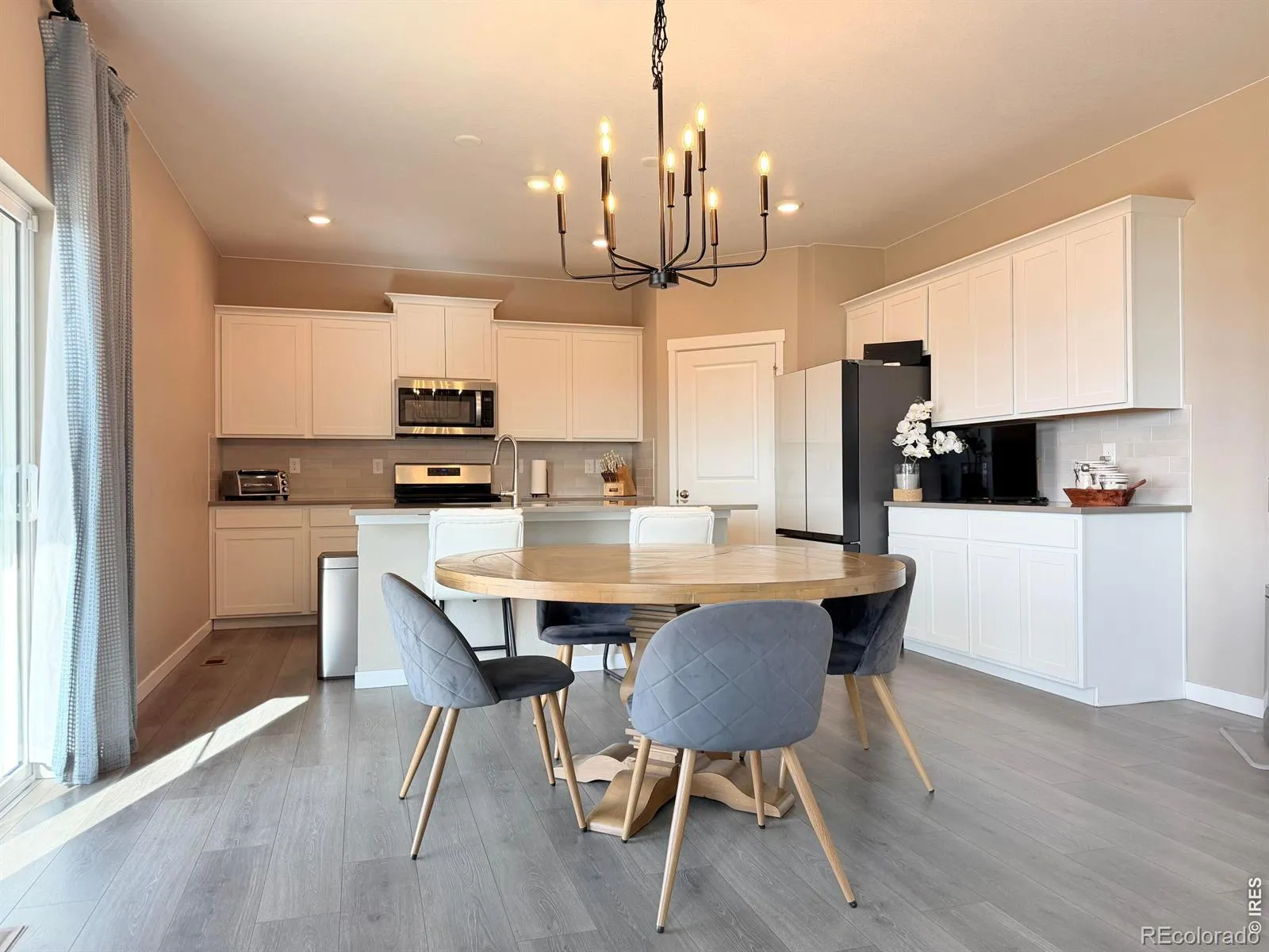 Move in, settle down, and start living! From the moment you walk into this former model home, you’ll feel the difference-thoughtful design, elevated finishes, and a warm, inviting atmosphere that goes far beyond what you’ll find in a standard new build. Why wait months for construction, pay extra for upgrades, and start from scratch…when this home already has it all? Beautiful designer paint colors flow throughout, creating a space that feels both stylish and calm. Every detail has already been selected and completed, saving you the time, expense, and stress of a design center.At the heart of the home, the spacious kitchen invites connection-featuring a large island with sink, granite countertops, abundant cabinetry, and plenty of room for cooking, gathering, and everyday living. Durable composite flooring runs throughout the main level, offering both style and function-upgrades that often come at a premium in new construction, already included here. A main-floor bedroom with a full bathroom provides the flexibility today’s buyers need-perfect for guests, multi-generational living, or a quiet, tucked-away office. Upstairs, a versatile loft creates the ideal second living space for movie nights, a playroom, or a cozy retreat. The additional bedrooms are generously sized, offering comfort, space, and room to grow. At day’s end, escape to the expansive primary suite-a true private sanctuary with a spa-like bathroom featuring dual sinks, an oversized shower, a private toilet room, and an impressively large walk-in closet. Situated on a large corner lot, the large fenced backyard is ready to enjoy from day one-perfect for summer barbecues, gatherings with friends, or peaceful evenings under the Colorado sky. No waiting, no added expense-just enjoy. And unlike new construction communities still in progress, this home offers the advantage of an established setting-no ongoing construction, no noise, no uncertainty-just a neighborhood that’s already come to life.