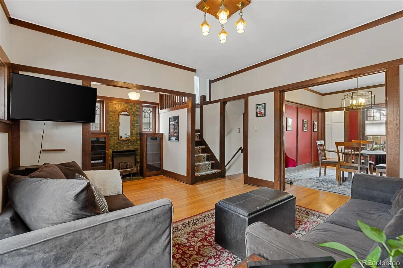 Stunning Craftsman half duplex in the highly sought-after City Park South neighborhood where timeless architecture meets thoughtful modern updates in one of Denver’s most beloved locations. Set on an elevated lot with an expansive front porch, this home draws you in with its charm and presence. Inside, classic Craftsman details have been beautifully preserved, including an entry vestibule, a decorative fireplace flanked by built-in bookcases with leaded glass, high ceilings, stained glass windows, rich wood floors, and original moldings, fixtures, and pocket doors that reflect the artistry of the era. The second floor offers three bedrooms, including one with a private porch, perfect for coffee at sunrise. You’ll also find working transoms, an updated bathroom, and the added efficiency of Pella windows. The kitchen has been thoughtfully updated for modern living, featuring beautiful countertops, appliances, small wine refrigerator, and a butler’s pantry. Downstairs, the basement provides flexible living space with a family room, workout area, half bath, and a bonus room with laundry and original clawfoot tub, preserved during the 2021 remodel. Second walkout access to a low-maintenance backyard space for entertaining, with a stunning 100+ year-old lilac tree and two off-street parking spaces.