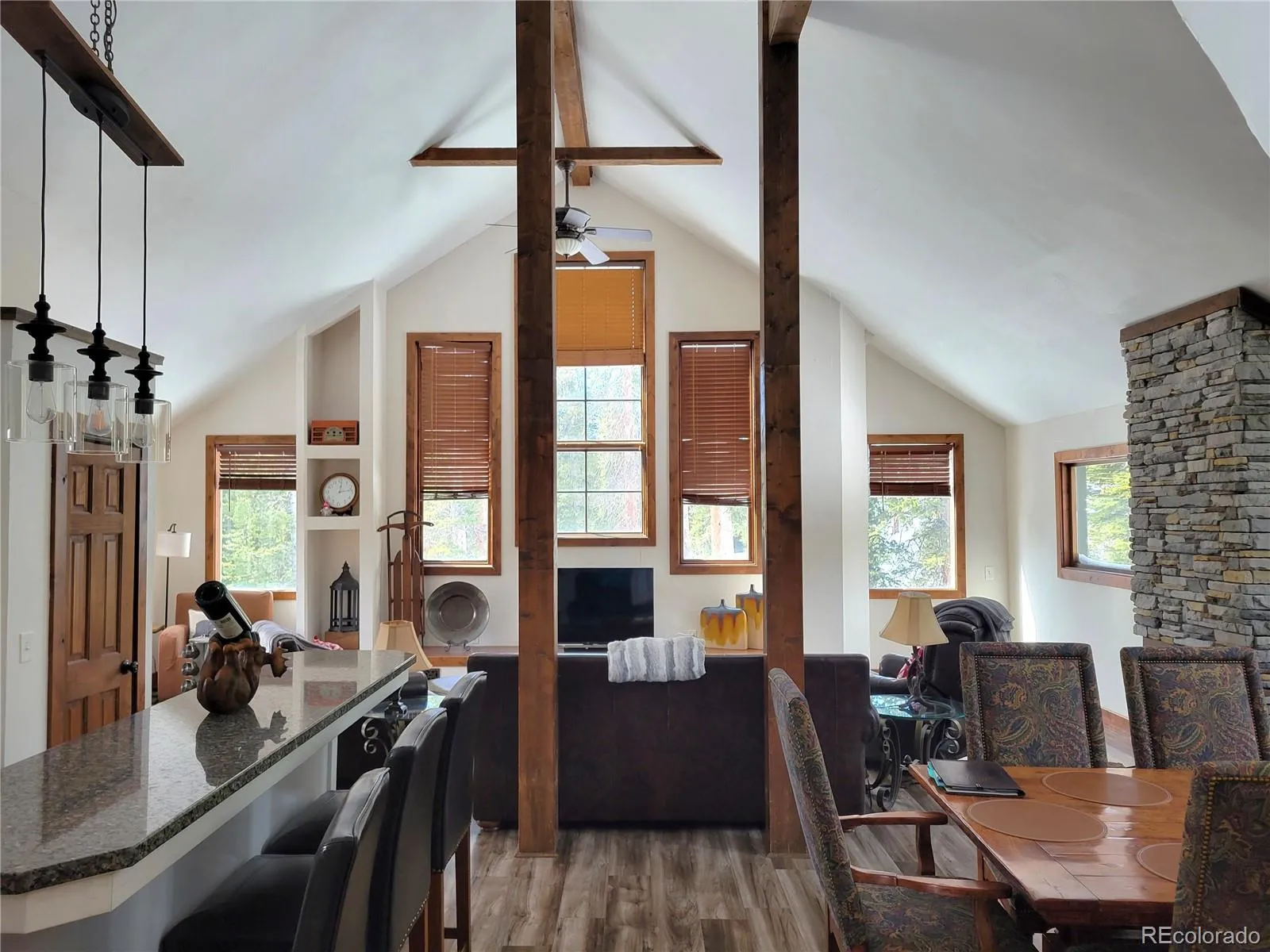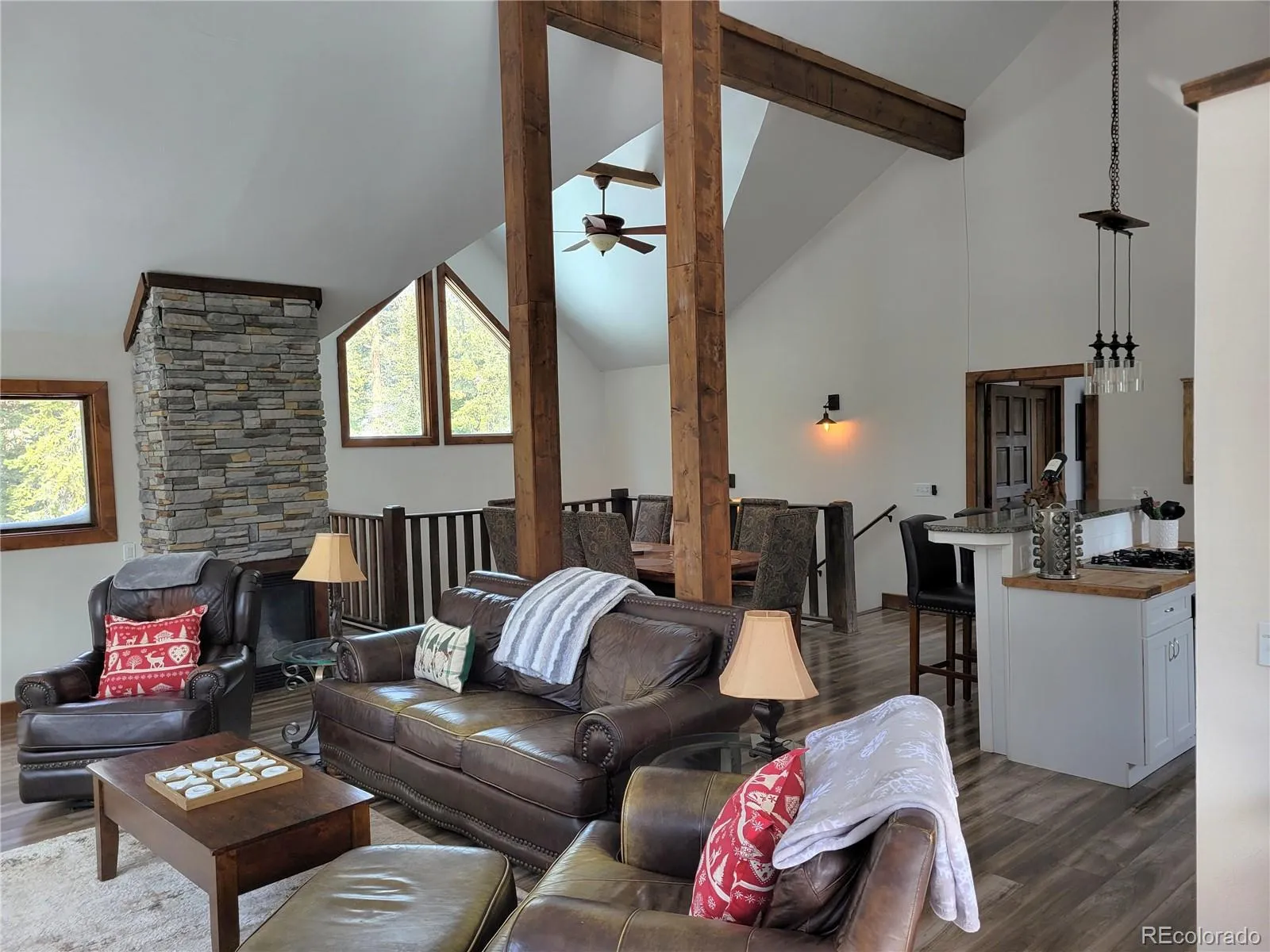 The Mountain Modern Home is an impressive 2,646 square feet of entertaining space. Featuring an open design living space to keep everyone involved in the conversation, the kitchen, dining area, and living room are all conveniently placed to provide ease of access. The primary bedroom suite is located just off of the dining area and the guest half bath completes the main floor. Heading downstairs you find a cozy game center with a blackjack table and a foosball table. There’s also a wood stove downstairs that can keep the entire home heated. To complete the downstairs, the two guest bedrooms and a bonus room are all located just off of the game room. –