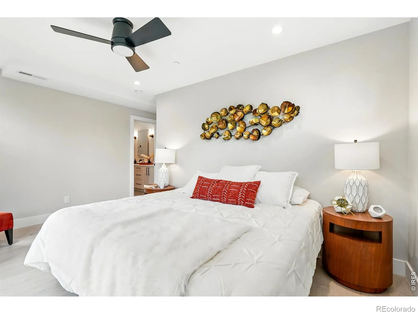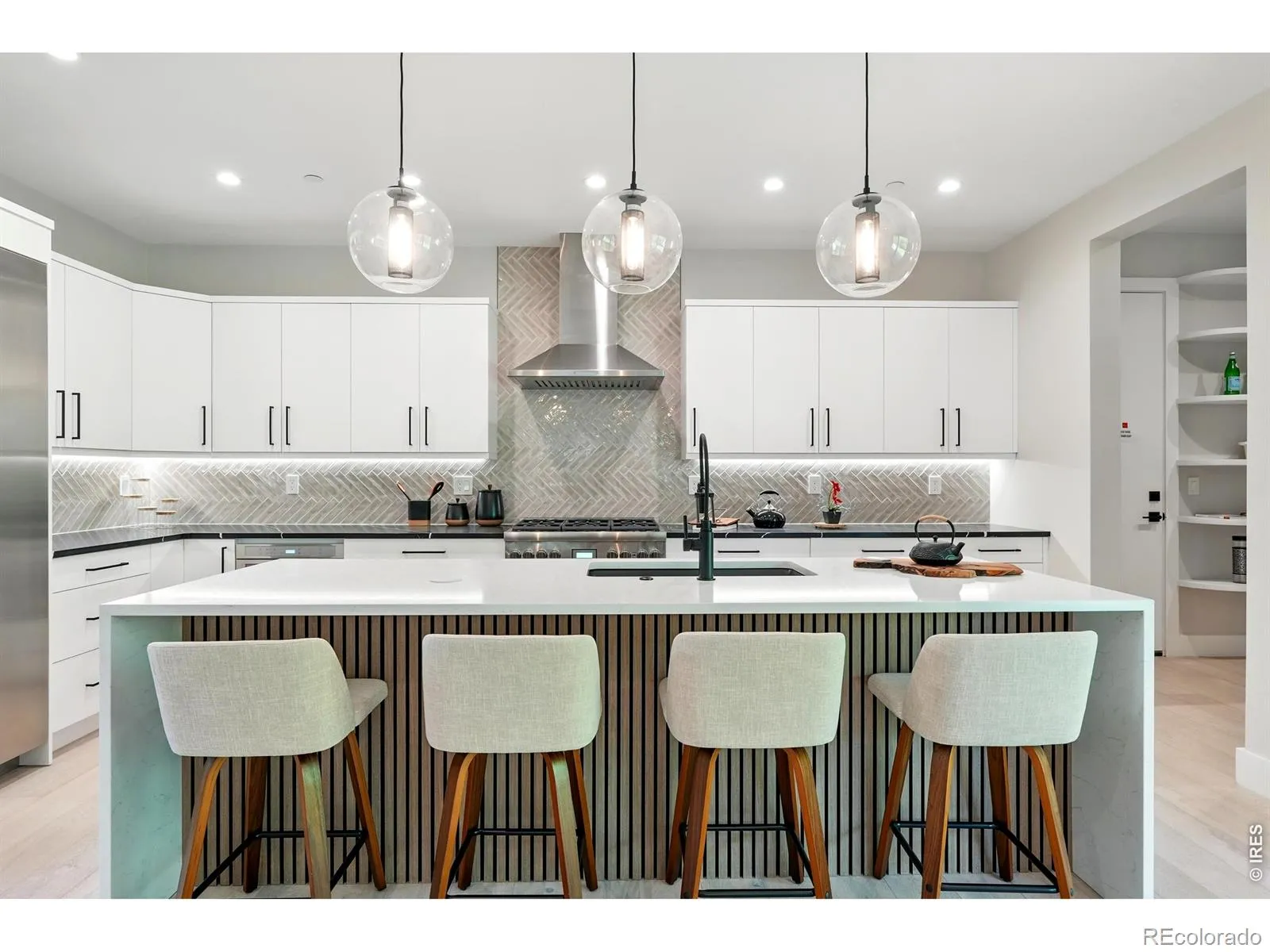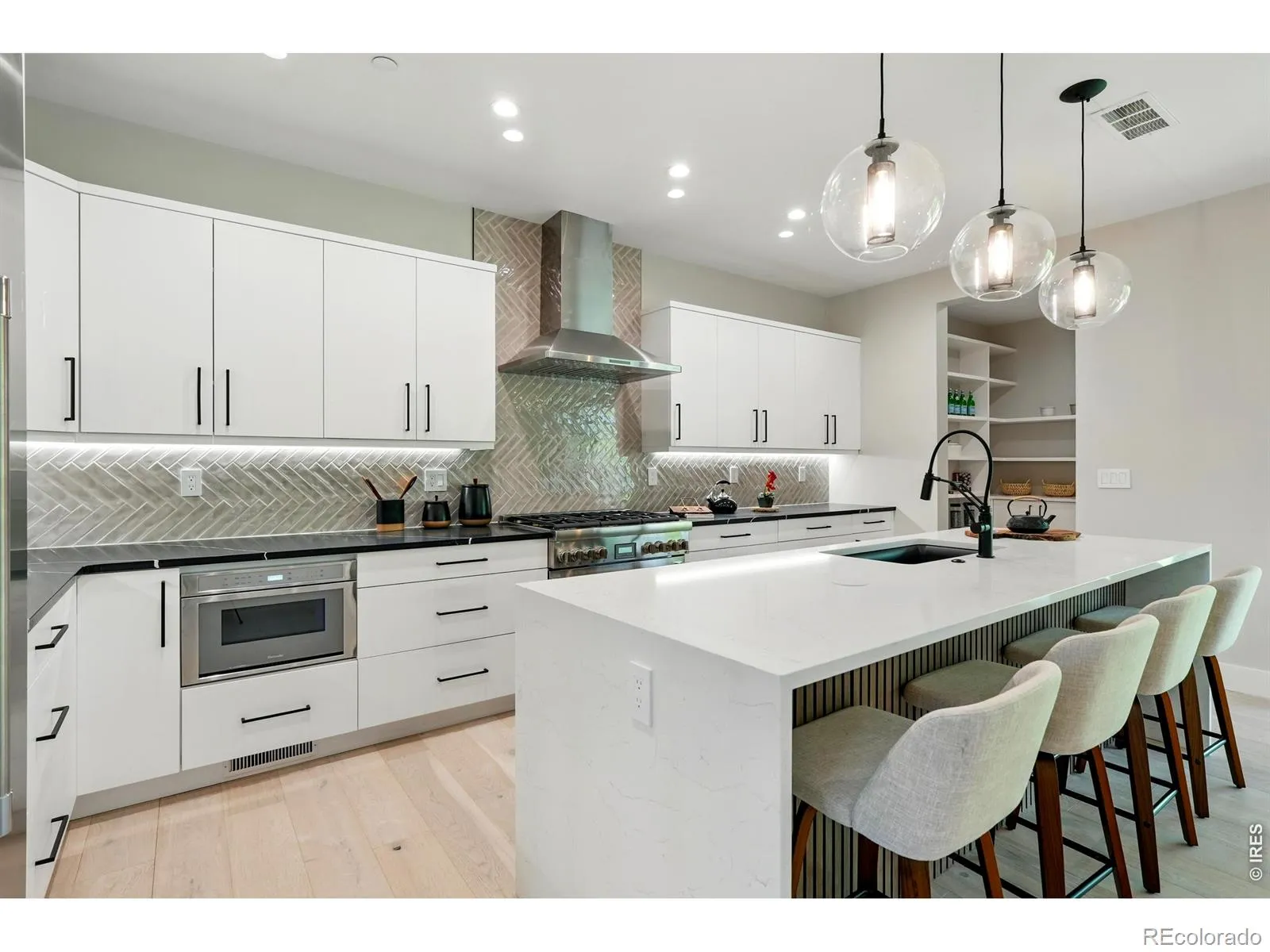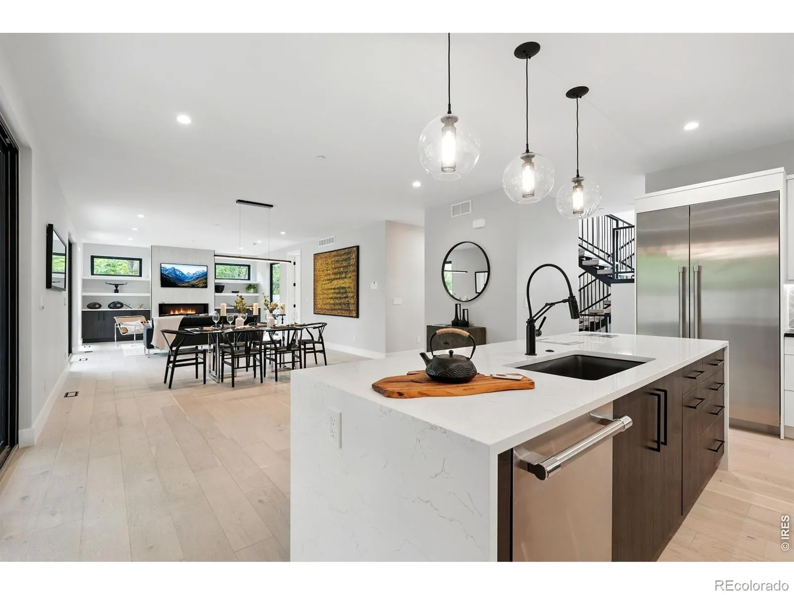 HUGE PRICE REDUCTION. Set in the heart of South Boulder’s sought-after Table Mesa neighborhood, this new net-zero home with a 10kW owned solar system is quietly positioned on a cul-de-sac (not on Table Mesa). Offering easy access to nearby trailheads, parks, top-rated schools, and Table Mesa Shopping Center. Every detail of this 5 bed, 6 bath home with 2 car garage marries luxury and function, thoughtfully designed to accommodate both everyday living and entertaining. Soaring ceilings and stunning white oak floors create an inviting, open-concept living space. At the heart of the home, the chef’s kitchen is impeccably appointed with Thermador appliances, quartz countertops, a dramatic 9-foot waterfall island, & an oversized walk-in pantry with wine fridge & direct garage access. Sun-filled dining and living spaces transition effortlessly to a covered patio, overlooking your beautifully landscaped, fully fenced backyard with mature trees. The main level bedroom with large en-suite bathroom is perfect for guests or home office. Take the custom floating white oak & steel staircase to the upper level, you’ll find the primary suite, 2nd en-suite bedroom and laundry room. The primary suite is a sanctuary unto itself, boasting a custom walk-in closet and 5-piece luxury bath with heated floors, steam shower, soaking tub and vaulted ceilings. Head outside onto your private balcony to enjoy morning coffee or evening stargazing. The fully finished basement features 2 bedrooms, wet bar, & large rec room that’s perfect for theater, game room, or home gym. Wide driveway & attached two car tandem garage offers EV charger, two over head doors (can pull through into backyard) & two entrances into the home. A multi-zone HVAC system, heated bathroom floors, smooth drywall, radon mitigation system, and a fully xeriscaped front yard are just a few of the custom features this lovely home has to offer. Projected HERS index score of 0 ensures year-round comfort & considerable cost savings
