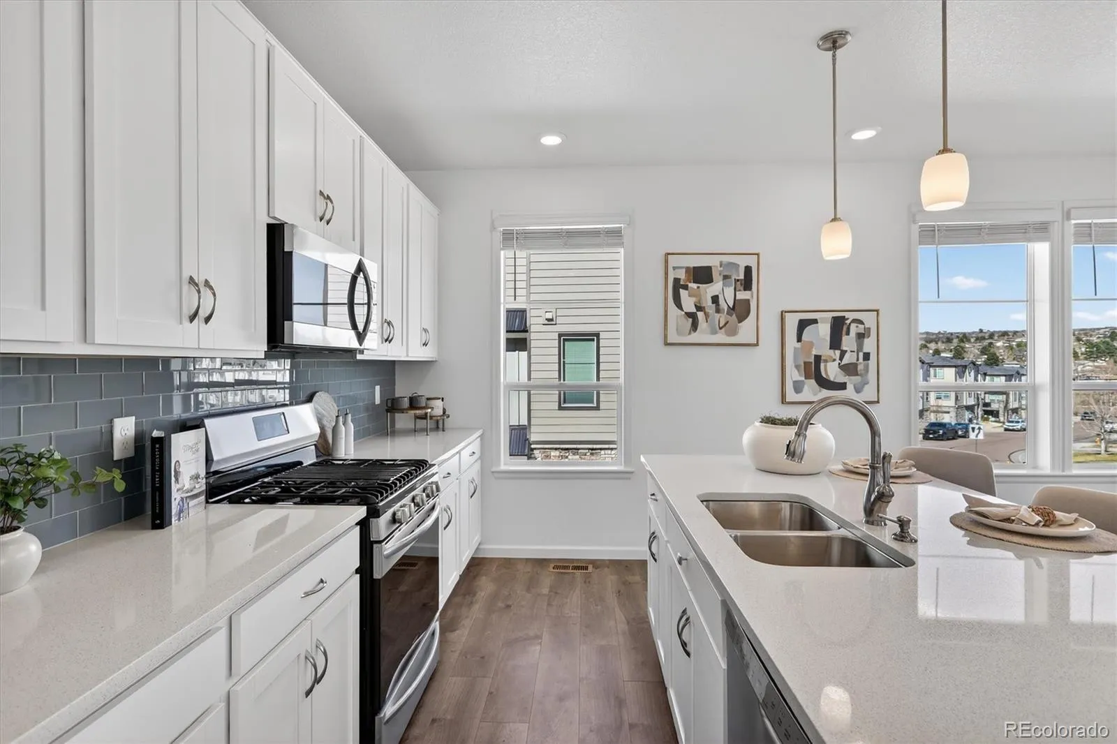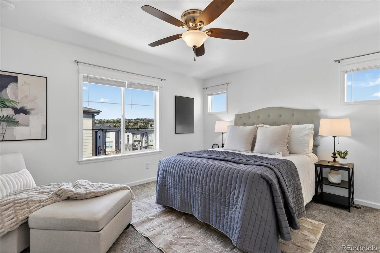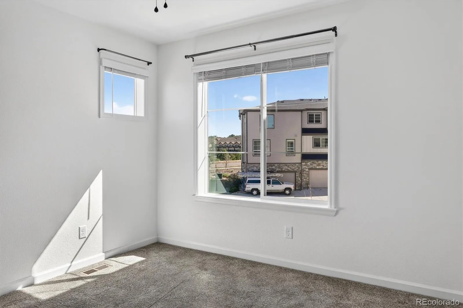 Welcome to 1592 Castle Creek Circle—an exceptional end-unit townhome that stands out with natural light, modern finishes, and a versatile multi-level design that lives larger than expected. With additional windows and only one shared wall, this home offers a bright, airy feel and added privacy that’s hard to find. The main living level is designed to impress, featuring an open-concept layout where the living room, dining area, and kitchen come together seamlessly. The kitchen is both stylish and functional, showcasing white cabinetry, sleek countertops, a spacious island with seating, and stainless steel appliances—all opening to a private patio, perfect for enjoying Colorado’s sunshine or winding down at the end of the day. On the entry level, you’ll find a flexible room ideal for a home office, guest space, workout area, or creative studio—conveniently located near the attached 2-car garage for easy everyday living. Upstairs, the primary suite offers a comfortable retreat with abundant natural light, an en-suite bathroom, and generous closet space. The upper level also includes a full bathroom and conveniently located laundry, adding to the home’s thoughtful and efficient layout. This low-maintenance property is ideally situated with easy access to parks, trails, shopping, dining, and commuter routes. Combining style, function, and location, this end-unit offers the kind of everyday living that feels easy, elevated, and ready to enjoy.