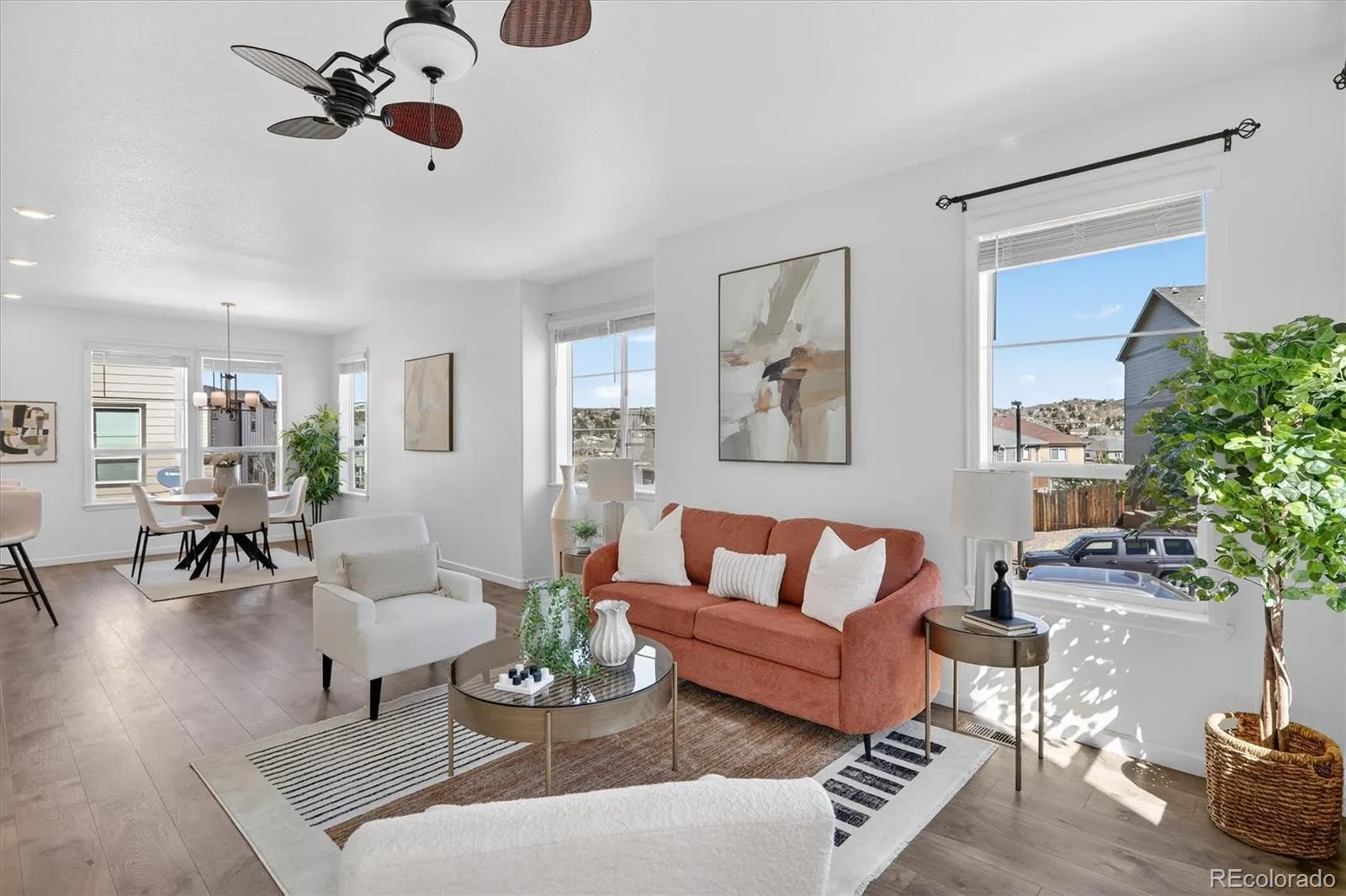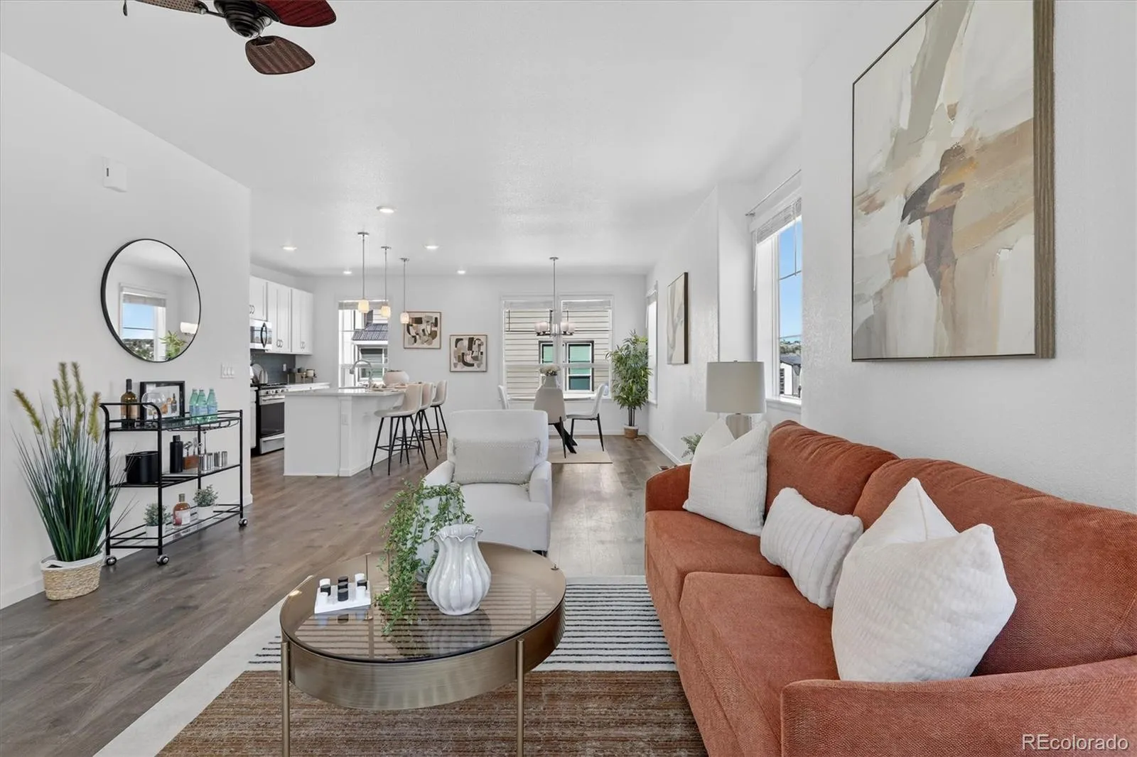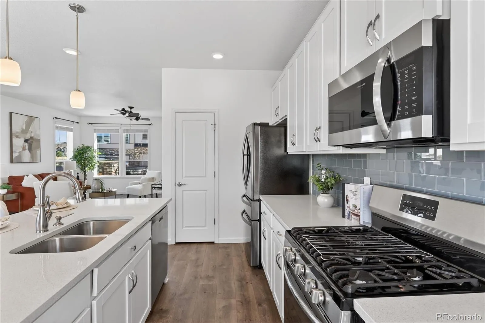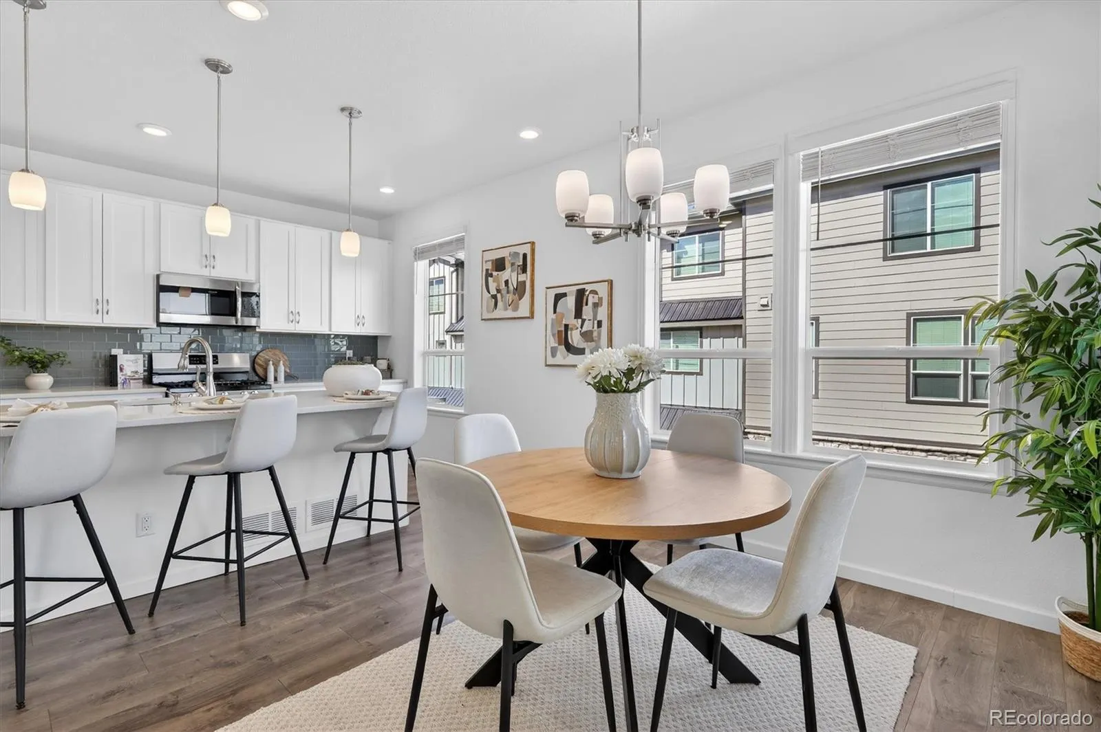 Welcome to 1592 Castle Creek Circle—an exceptional end-unit townhome that stands out with natural light, modern finishes, and a versatile multi-level design that lives larger than expected. With additional windows and only one shared wall, this home offers a bright, airy feel and added privacy that’s hard to find. The main living level is designed to impress, featuring an open-concept layout where the living room, dining area, and kitchen come together seamlessly. The kitchen is both stylish and functional, showcasing white cabinetry, sleek countertops, a spacious island with seating, and stainless steel appliances—all opening to a private patio, perfect for enjoying Colorado’s sunshine or winding down at the end of the day. On the entry level, you’ll find a flexible room ideal for a home office, guest space, workout area, or creative studio—conveniently located near the attached 2-car garage for easy everyday living. Upstairs, the primary suite offers a comfortable retreat with abundant natural light, an en-suite bathroom, and generous closet space. The upper level also includes a full bathroom and conveniently located laundry, adding to the home’s thoughtful and efficient layout. This low-maintenance property is ideally situated with easy access to parks, trails, shopping, dining, and commuter routes. Combining style, function, and location, this end-unit offers the kind of everyday living that feels easy, elevated, and ready to enjoy.