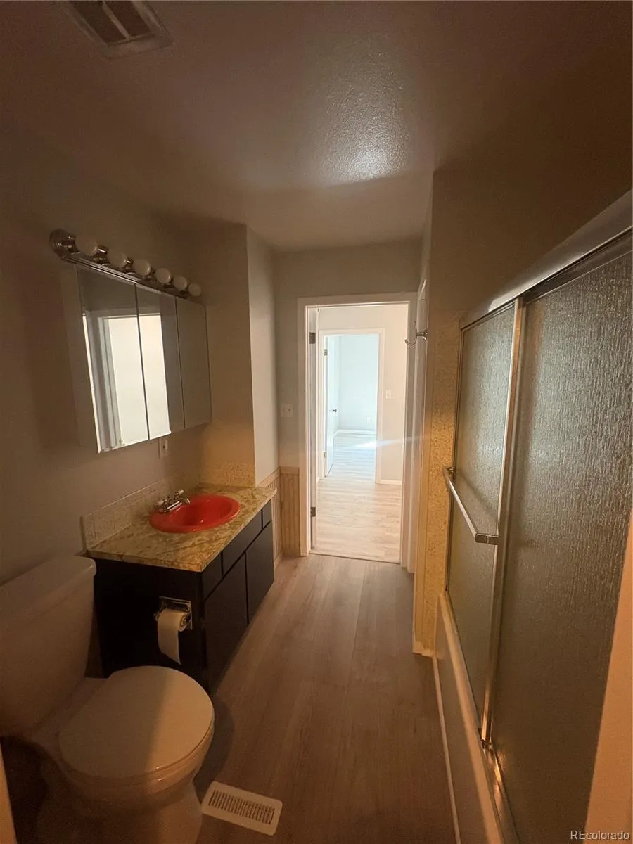 The layout includes two main-level bedrooms with new flooring, plus an upper-level loft and primary suite offering flexible space for an office or additional living area. Both bathrooms have been updated, including a main-level walk-in tile shower and new vanity.