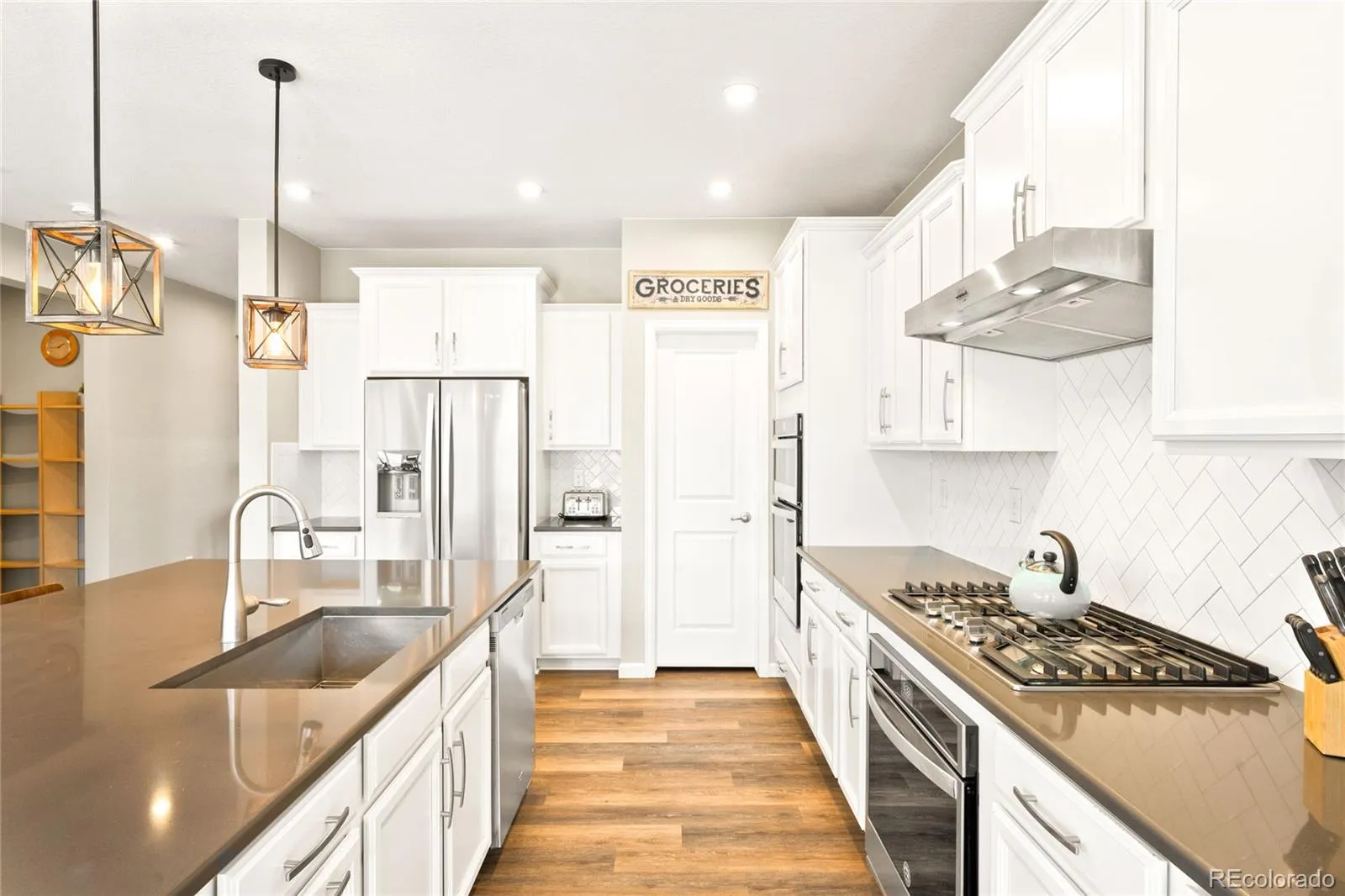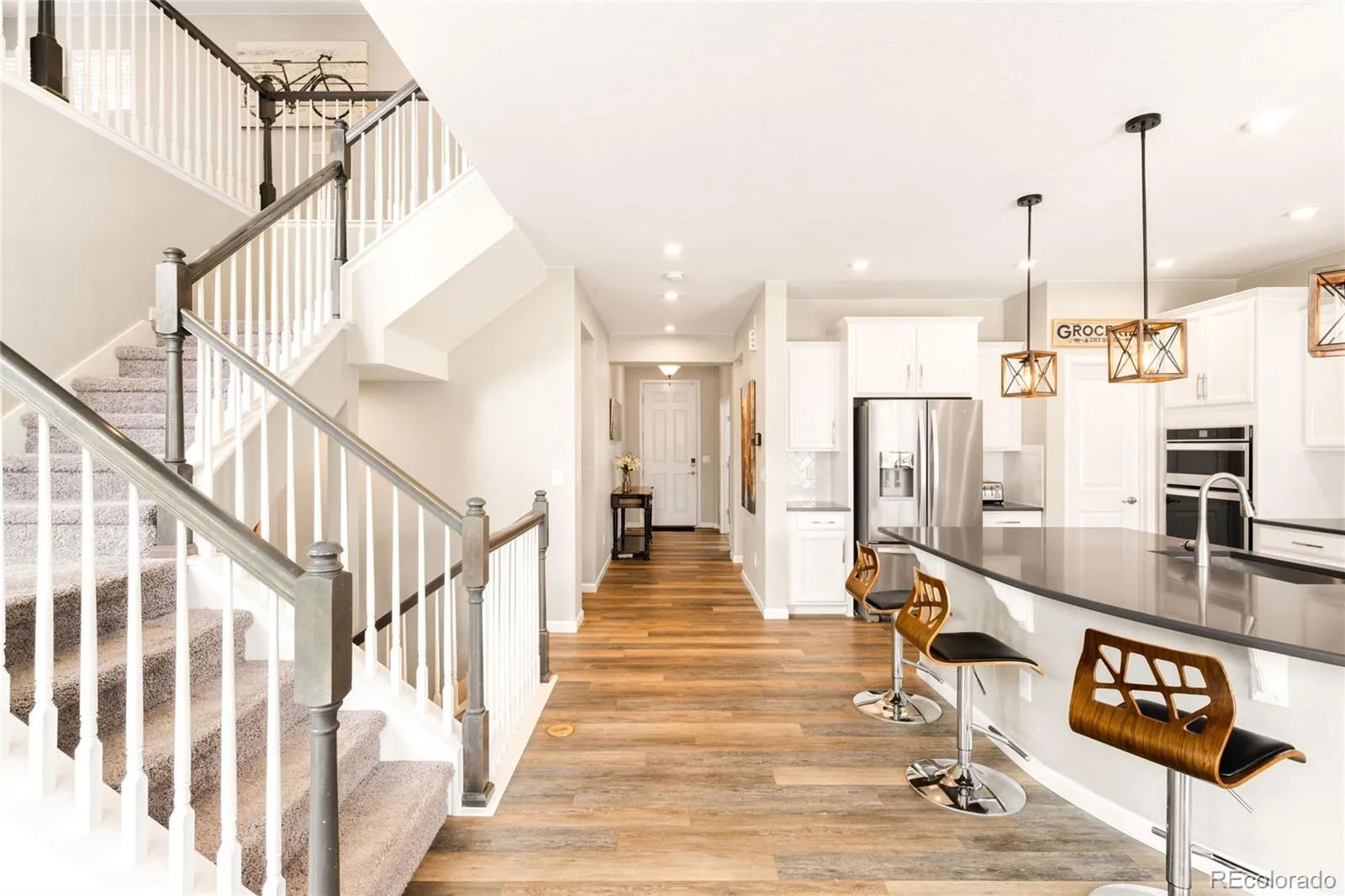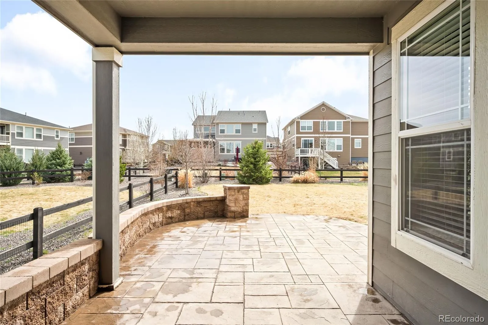 The basement, finished originally by the builder with open staircase and a seamless feel to the main level, provides generous additional living space, the 4th bedroom and full bathroom, and abundant storage. Out back, an oversized yard with a partially covered stamped concrete patio offers a private outdoor retreat suited for Colorado’s best days.