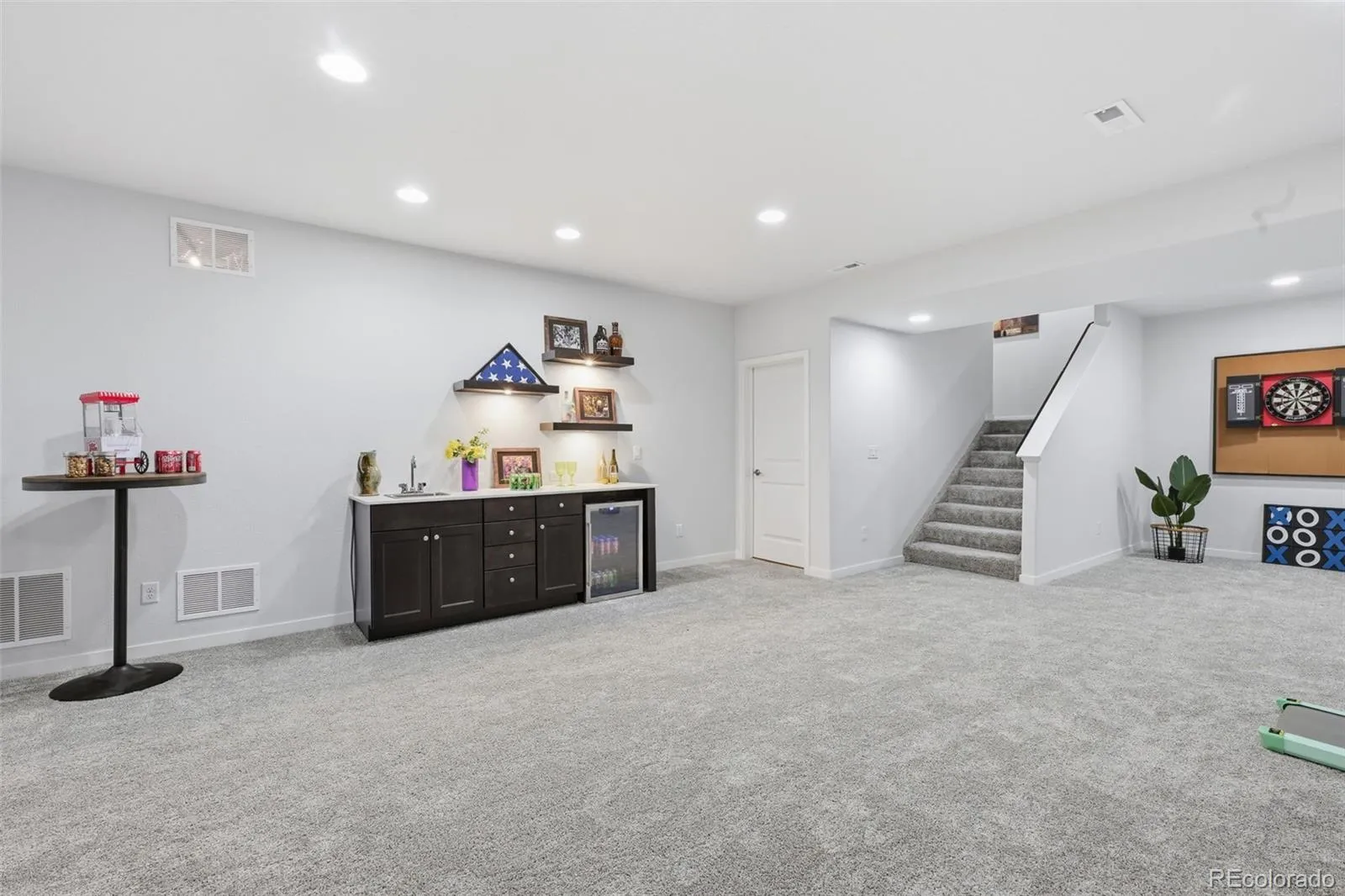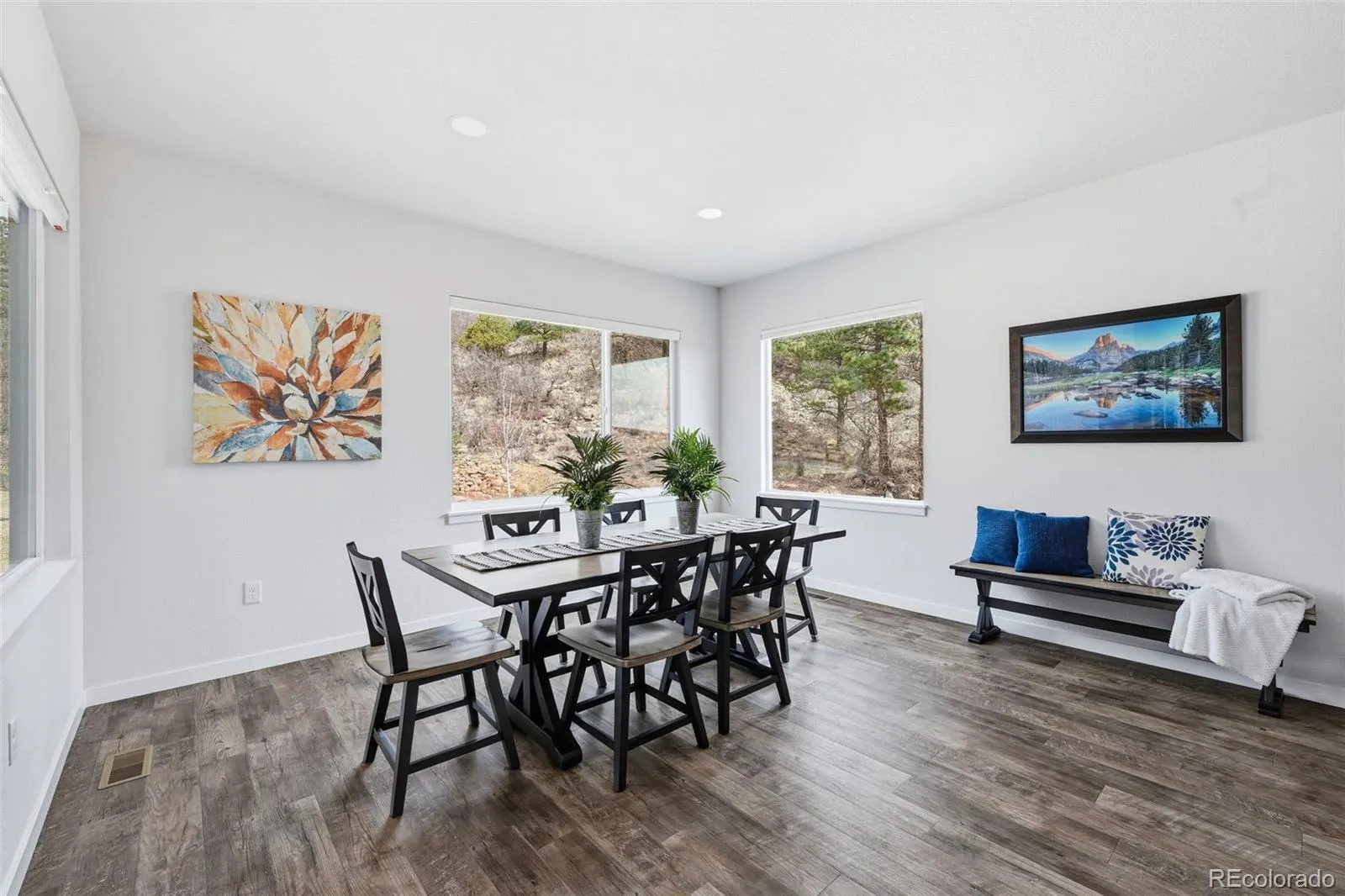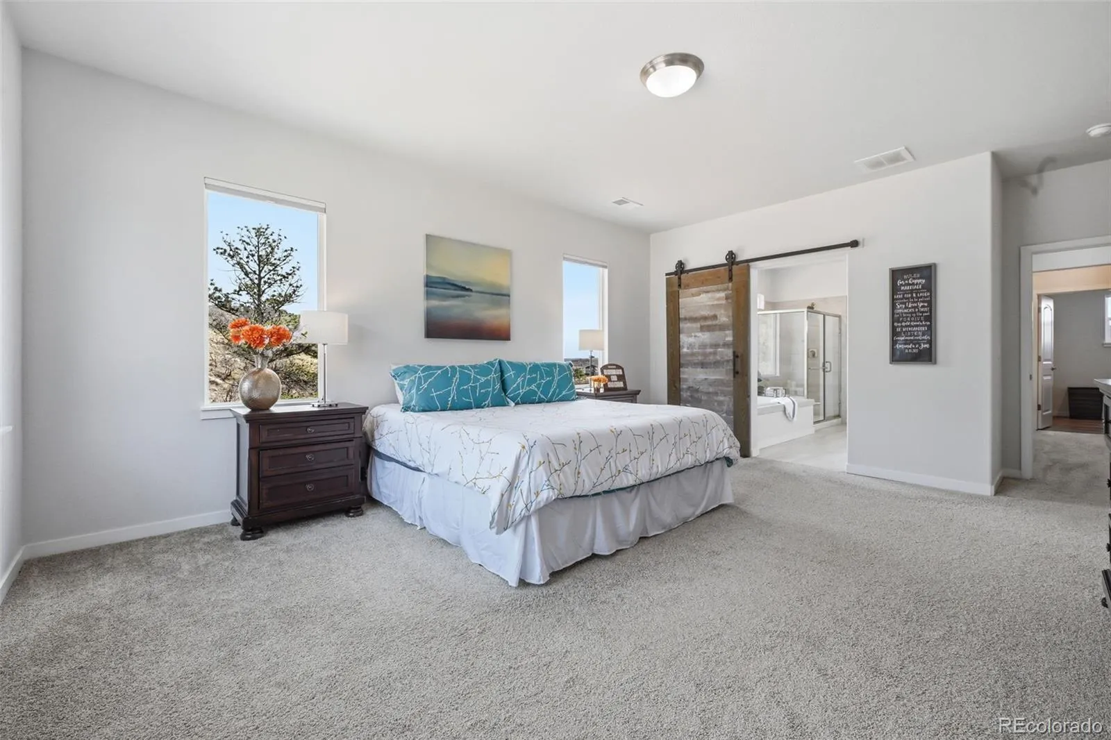 Stunning Forest Lakes 6-bedroom + office + loft home designed for multigenerational living, perfectly positioned with no rear neighbor and added privacy on one side. Enjoy a peaceful setting surrounded by wildlife, scenic views, and nearby trails. The open-concept main level features LVP flooring, a private office with French doors, and soaring 19’ceilings in the great room. Grand windows throughout the home allow natural light to brighten up your living areas and give you access to enjoy breathtaking Colorado Springs surroundings from every room. A massive slider wall of windows opens the great room to the covered back patio. Chef’s kitchen offers granite counters, oversized island with pendant lighting, gas cooktop, double ovens, stainless steel appliances, glass tile backsplash, soft close, dovetail constructions, and a massive walk-in pantry with space for a second refrigerator. Rare dual primary suites provide flexibility: one on the main level and a second upstairs retreat with heated bathroom floors, dual vanities, barn door, and a massive walk-in closet that connects directly to the laundry room. All bedrooms feature their own dedicated bathroom with quartz counters, offering comfort and privacy for everyone. The upper level also includes a spacious loft with incredible views. The finished basement expands your living space with a large rec room, wet bar with quartz counters and floating shelves, two additional bedrooms, and ample storage. Additional highlights include a 4-car garage with epoxy floors and 220V for EV charging, covered patio with gas line for grilling, smart thermostats with zoned climate control, smart doorbell and garage opener, recirculating hot water system, humidifier, high-efficiency waterheater, radon mitigation system, and a custom matching shed. Located in Forest Lakes, a sought-after communityoffering trails, parks, amphitheater, private lakes for paddleboarding, kayaking, and fishing, community events, andeasy access to I-25.