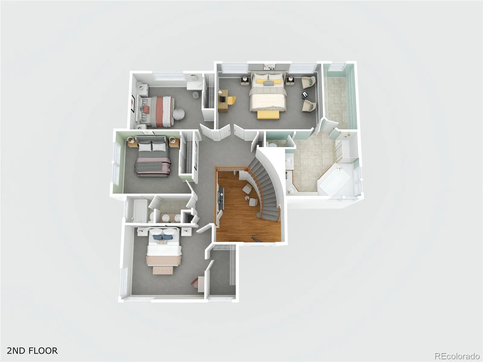 Upstairs, the vaulted primary suite provides a peaceful retreat with sitting area space and a spacious five-piece bath including soaking tub, dual vanities, and separate shower. Additional bedrooms are well-sized and thoughtfully positioned for privacy and flexibility.