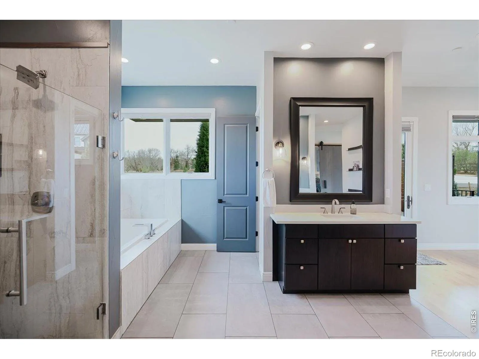 At the end of a quiet Niwot cul-de-sac, 8568 Foxhaven Drive showcases contemporary design with modern finishes, natural surroundings, and exceptional energy efficiency. This 2017 custom-built ranch offers 5,467 square feet on a nearly half-acre lot, creating a “right-sized” layout for everyday comfort and effortless entertaining. The main level features twelve-foot ceilings, natural wood and stone, industrial steel accents, and four indoor-outdoor living areas. An open, light-filled floor plan is enhanced by multi-zoned radiant floor heat, energy-efficient heating and cooling splits, automatic solar roller blinds, and UV-tinted Pella energy-rated windows. The gourmet kitchen includes Thermador and SubZero appliances, a striking single-slab Brazilian quartz island, walk-in pantry, custom steel range vent, walnut-finished cabinetry, and glass-front built-ins. The primary suite offers a spa-like ensuite with dual-head shower, oversized tub, walk-in closet, and private deck with a saline hot tub. Also on the main level are two additional bedrooms, two full baths, and a built-in work or studio space. A single step leads to the oversized, finished three-car garage with dual EV chargers and new garage doors. Solar panels on the garage are thoughtfully designed to be hidden from street-level view. The lower level features a spacious recreation room with eight-foot sliding doors opening to a fenced, professionally landscaped yard bordering open meadow. With a kitchenette, theater room, office/play/flex space area, climate-controlled storage, and a private guest suite with a dual-head steam shower, hosting is a breeze. A west-facing driveway benefits from afternoon sun for easy winter maintenance. Just moments from downtown Niwot, the local grocery, restaurants and trails, 8568 Foxhaven is move-in ready.