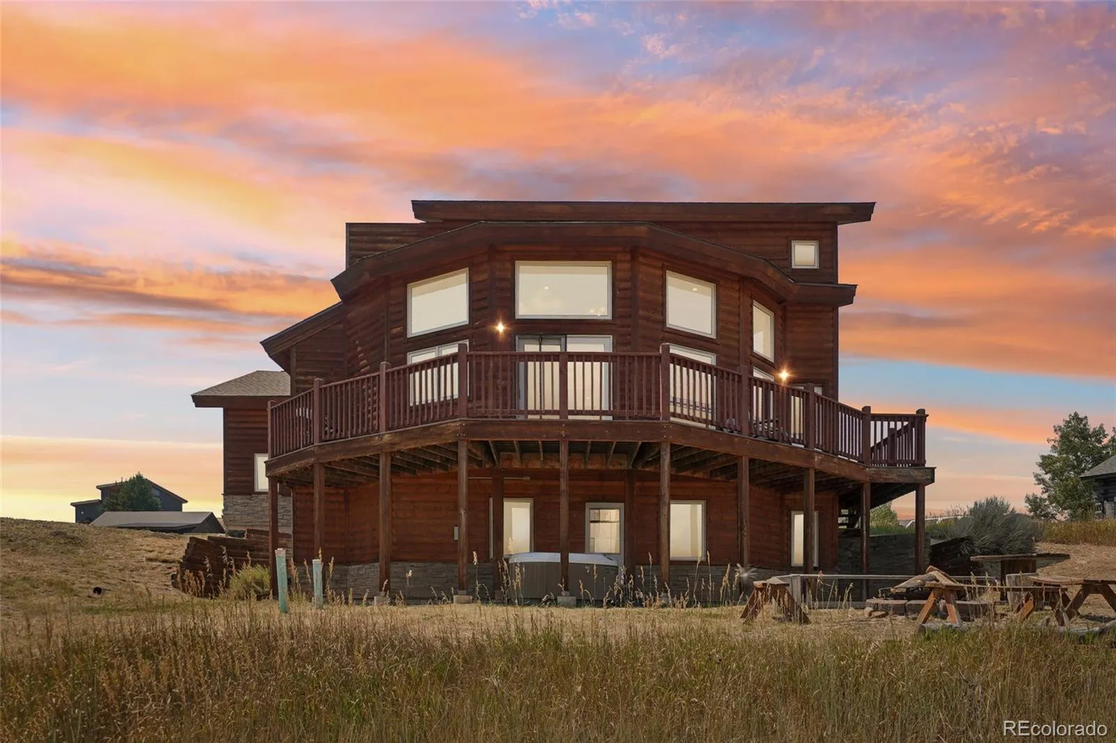 Exceptional Mountain Retreat in Innsbruck! This furnished 2-story log home combines mountain charm with modern updates. The open floor plan features vaulted ceilings, hardwood floors, and expansive windows framing stunning views of Rocky Mountain National Park and the Continental Divide. The chef’s kitchen boasts granite counters, stainless appliances with a brand new range and dishwasher, a walk-in pantry, and a breakfast bar, flowing into the inviting great room. Step outside to an expansive deck or relax in the private hot tub with panoramic mountain views. The primary suite is located entirely on the upper floor and offers a spa-style bath with jetted tub, dual vanities, and generous closets. A main-level bedroom with en-suite bath adds convenience, while the finished walk-out basement includes a family room, rec area, additional bedroom, full bath, and ample storage. Recent upgrades include new paint (2024), water heater (2020), and roof (2025). Perfectly located in the heart of Grand County with easy access to skiing at Winter Park and Granby Ranch, plus endless year-round recreation. With a 2-car garage, furnished interiors, and close proximity to town, this home is the ideal mountain retreat.