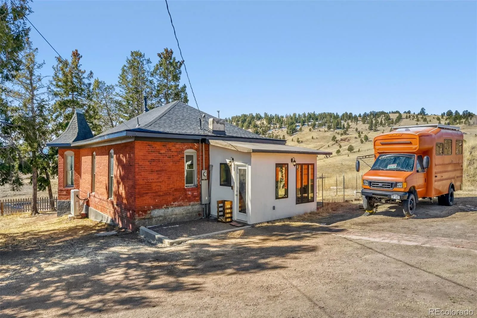 visits the watering hole in the adjacent valley. The beautifully redesigned bathroom features a classic iron clawfoot tub paired with modern amenities, creating a vintage elegance balanced with everyday functionality. The walls throughout have been freshly sanded and painted. The kitchen pantry with window is a rare treat for this historic home. A newly installed mini-split heating and cooling system ensures year-round comfort, from cozy winter nights to the few months of mountain summer heat. Fresh facia has been restored by carefully removing the old wood siding revealing a natural brick beneath, adding timeless texture to the rustic exterior. All soffits have been painted, along with a newer roof and gutters installed just recently. To further elevate the footprint a garden room was added to enhance the size of the living space, bringing the outdoors inside offering abundant natural light or a mudroom for storage for your outdoor gear. Ample parking space with RV vibes galore along with a shed for storage. There is even a pizza bake business next store for an afternoon snack just steps from your front door. Every nook of this homestead has been thoughtfully curated to honor its history while introducing modern enhancements making this one-of-a-kind American classic home a rare gem in the Colorado community of Cripple Creek. Just blocks away from seasonal events such as the Donkey Derby Days of summer and the Ice Festival held in the winter. This quaint mining town is calling you home.