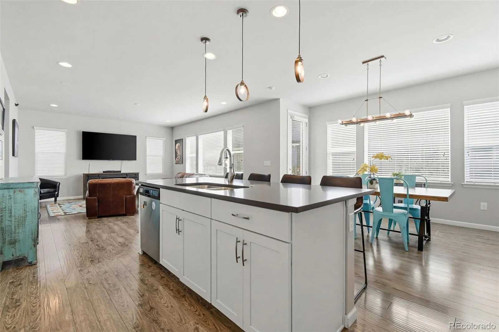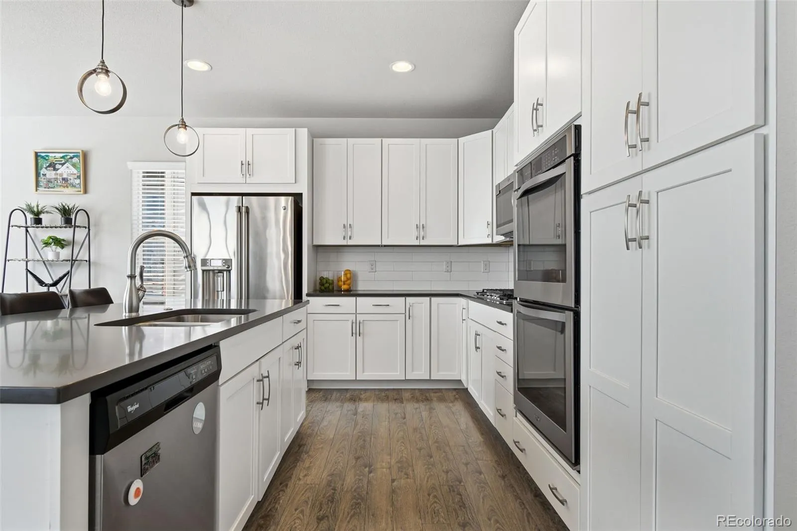 Welcome to 15186 W 94th Avenue in Arvada where location, upgrades, and lifestyle come together beautifully. This thoughtfully designed home offers a bright, open layout with high-end finishes throughout. The gourmet kitchen is a standout feature, complete with stainless steel Whirlpool appliances, an amazing gas stove, Sonoma Wyoming Maple Glaze White cabinetry, stunning gray quartz countertops, and a classic white subway tile backsplash perfect for both everyday living and entertaining.