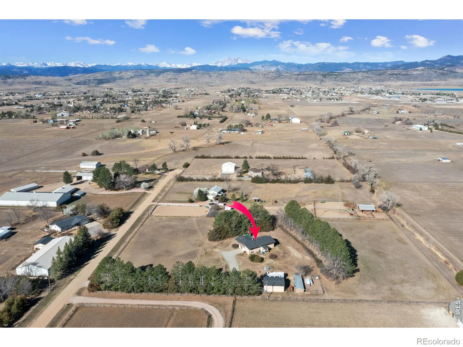 Peace & quiet await at this special place in the country, yet just 10 minutes to Berthoud, Longmont or Loveland. Lots of space across 4.47/acres with just about 3000sf and spaces for everyone and a great layout for home offices, hobbies, studio space and more. Beautifully updated kitchen features stone counters, custom cabinetry, new lightling, gas cooktop and stainless-slate appliances. Vaulted greatroom with wood-burning fireplace and beautiful mountain views. 6 bedrooms provide room for everyone plus there are three newly updated baths. Central air and radon mitigation system already in-place. Attached 2-bay garage plus huge 20×30 detached, heated shop, chicken coops, and space for animals and play, with lots of pine trees for extra privacy. Great view of Longs Peak and front range mountains! The ideal hobby farm and just a great place to call home. No HOA and includes 1-share of Dry Creek Lateral Ditch company water. Offered below appraisal and move-in ready at $949,000. Let’s explore today!