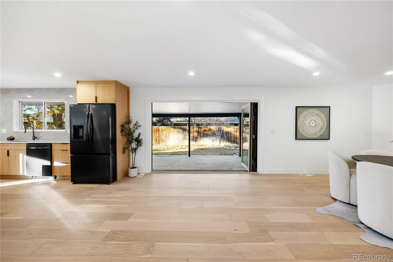 Outdoors, a private backyard retreat awaits, featuring a covered patio designed for both relaxed evenings and effortless entertaining. A two-car garage and a prime central location, just moments from Cherry Creek, Lowry, Cook Park, and the High Line Canal Trail, complete this exceptional offering.
