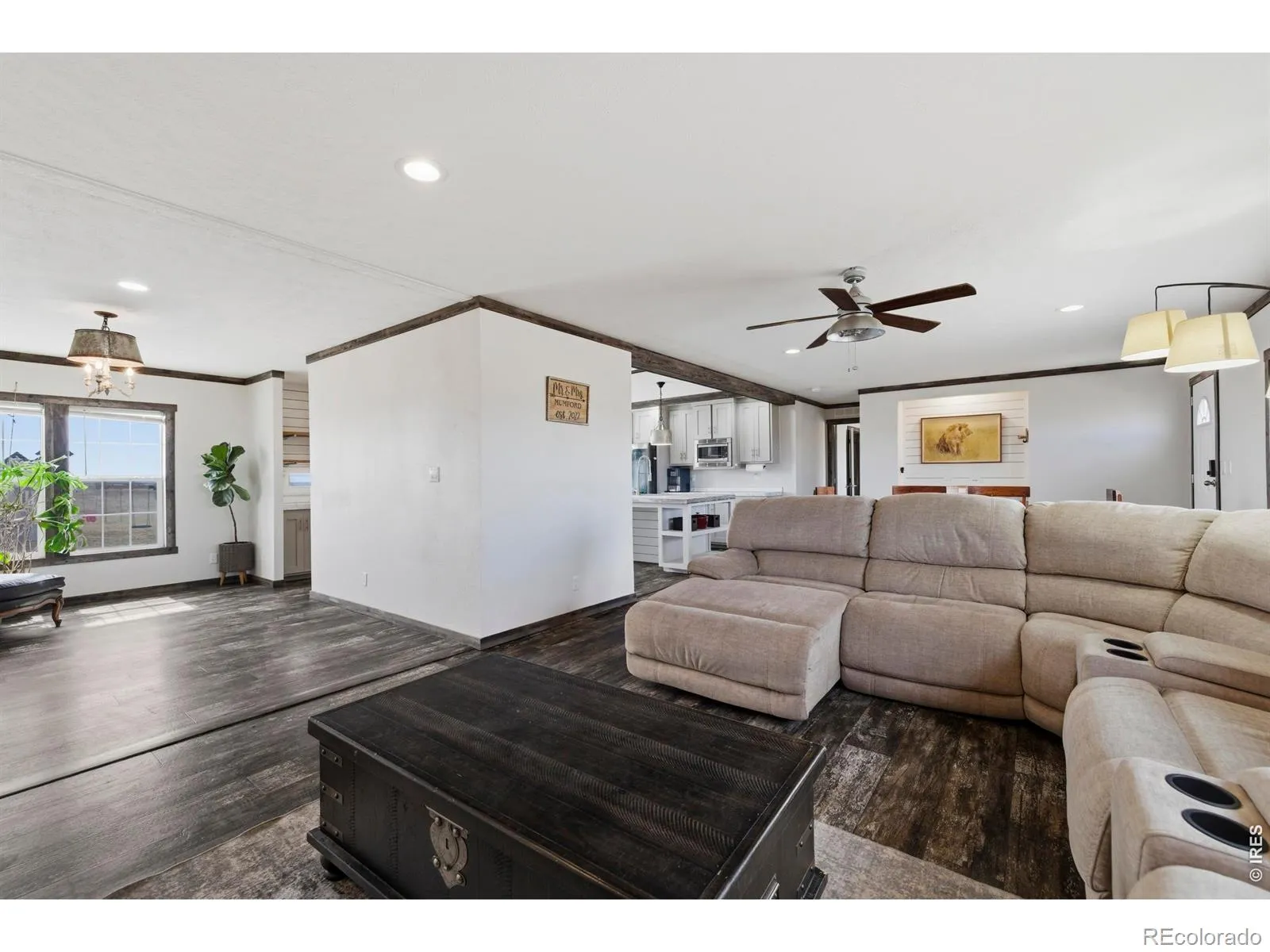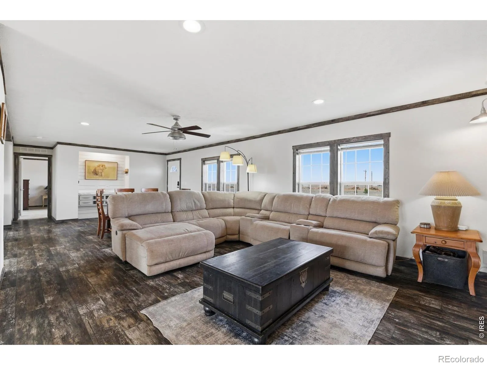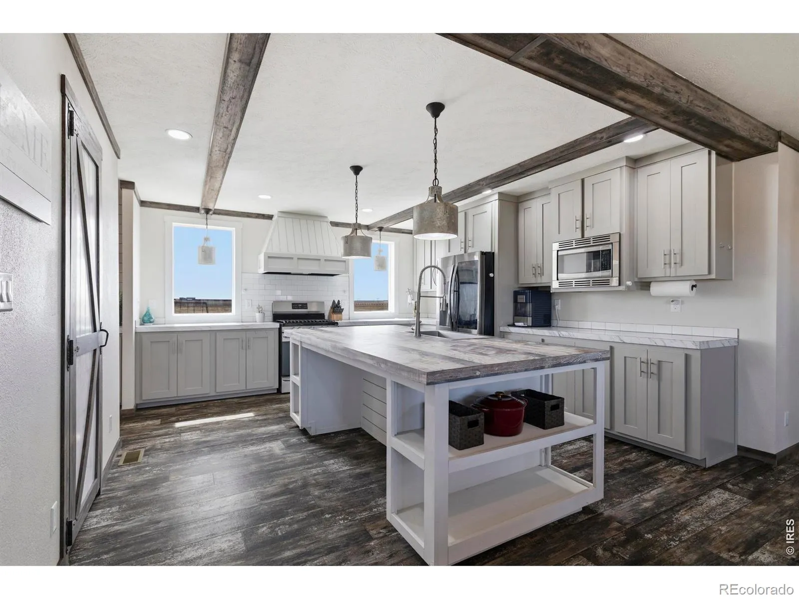 Welcome to your dream country retreat! This stunning 4-bedroom, 2-bath ranch-style home sits on 40 acres of open land, offering the perfect blend of modern comfort and rural living. Enjoy sweeping views from the patio or relax under the covered area by the outbuilding-ideal for entertaining or unwinding after a day outdoors. Inside, you’ll find beautiful modern finishes, a spacious kitchen with a large island, grey shaker cabinets, stainless steel appliances, and stylish pendant lighting. The inviting primary suite is designed for comfort, featuring dual sinks, a spacious tiled shower, separate soaking tub, built-in shelving, and a seated vanity. Shiplap accents add a warm, farmhouse touch throughout. Shop/Outbuilding is 1200 Square feet, allowing for plenty of room for storage or projects. Complete with a laundry/mud room for added convenience, a domestic well and space for horses or livestock. This property offers the best of Colorado country living-just waiting for you to call it home!