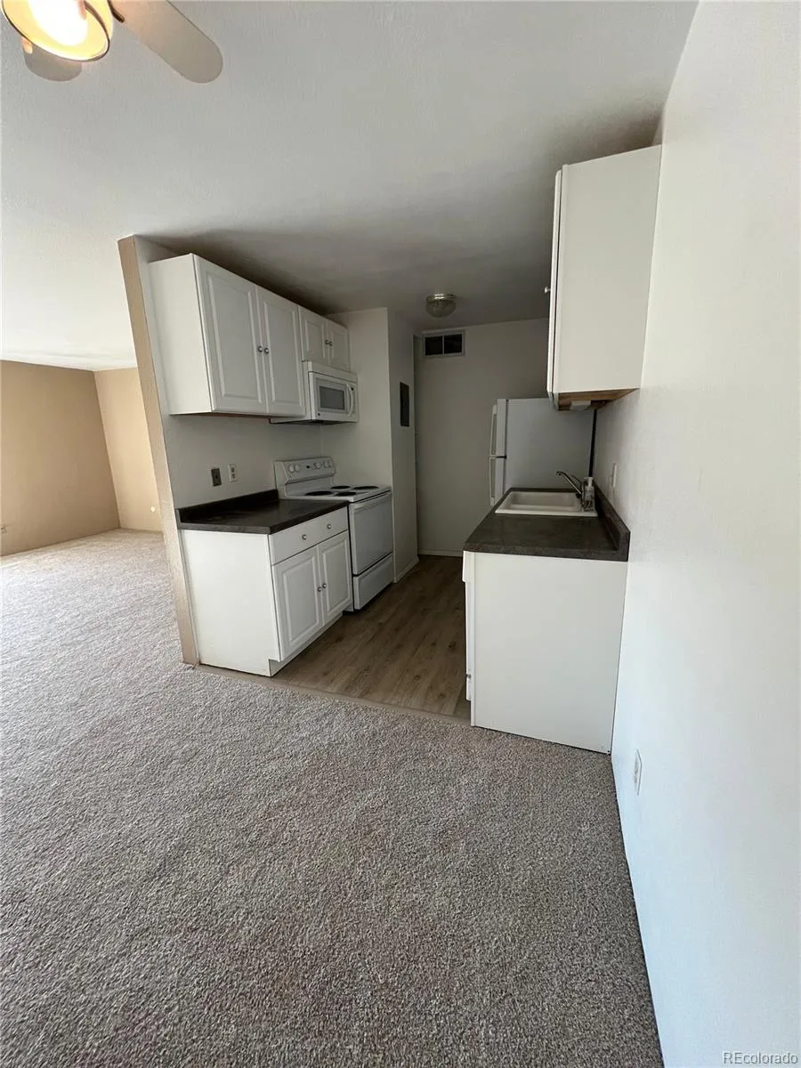 Step into this 2-bedroom, 1-bath affordable condo in the Bravado Condos community. This move-in-ready home features brand-new carpet in the bedrooms and living area and stylish vinyl flooring in the kitchen. Large windows fill the space with natural light, creating a warm and welcoming atmosphere. Relax on your private newly painted deck facing the large community open space. Enjoy the community amenities, including a pool and clubhouse. Your parking concerns are alleviated through the deeded parking space.