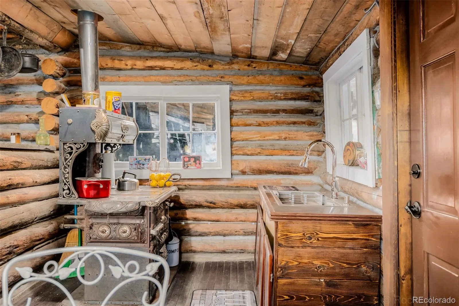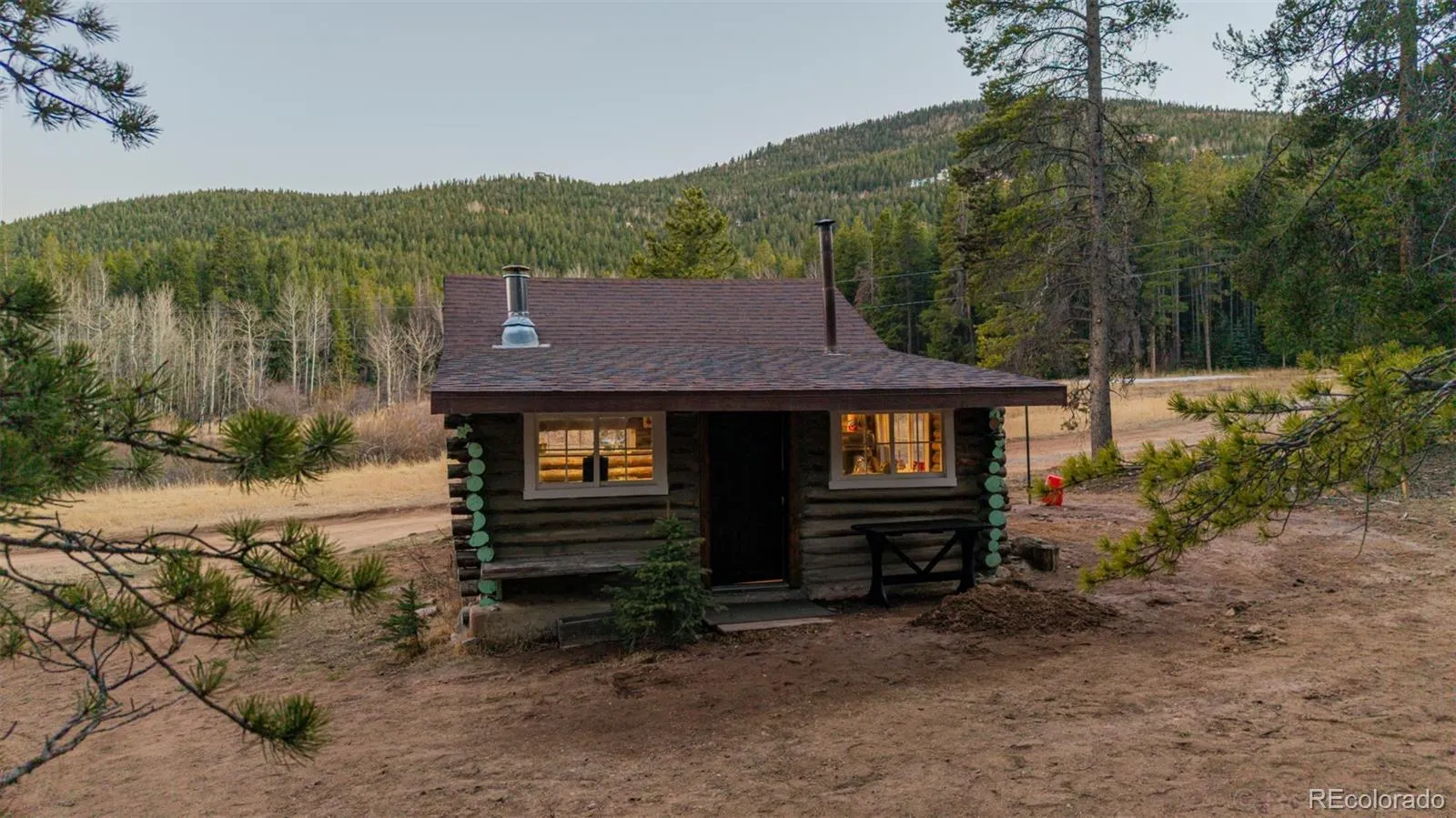 A truly rare opportunity to own a piece of history! This charming 1920s cabin is perfectly nestled among towering trees with breathtaking mountain views. Rich in character, the home showcases authentic log walls and ceilings, complemented by warm wood flooring and a spacious living room centered around a cozy wood-burning stove. The generous dining area flows into a rustic kitchen featuring an original wood-burning cook stove and sink, preserving the cabin’s timeless appeal. A major recent upgrade sets this property apart—a newly installed well is now in place, significantly enhancing usability and value compared to its previous offering. Modern sustainability meets vintage charm with owned solar panels providing electricity. The peaceful setting offers abundant trees, privacy, and plenty of space for outdoor enjoyment, including a designated grill area and convenient dirt parking. A finished outhouse with flooring and its own electric fireplace adds a unique and functional touch. An incredible opportunity for those seeking a truly rustic Colorado lifestyle with improved infrastructure and long-term livability.