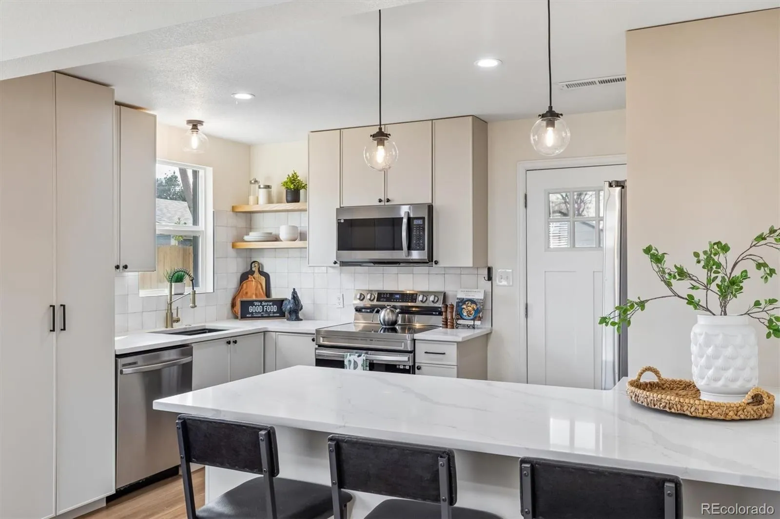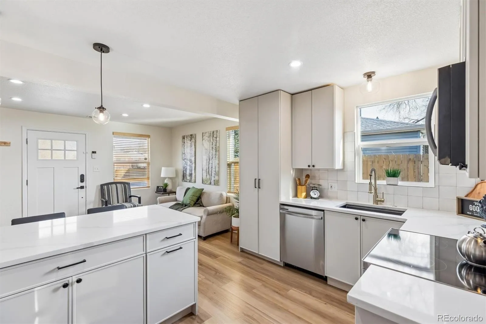 This welcoming, thoughtfully designed residence is truly move-in ready*Begin hosting summer gatherings in this fully remodeled two-bedroom, one-bathroom home, ideally located within walking distance of RiNo and York Street Yards*The home offers numerous standout features, starting with luxury vinyl flooring throughout, providing a clean, durable, & low-maintenance living environment ideal for pet owners*The beautifully updated kitchen reflects modern design w/slimline shaker cabinetry, stainless steel appliances, & a richly veined quartz peninsula that makes entertaining both stylish and effortless*An open-concept layout filled w/natural light enhances the home’s contemporary appeal*The primary bedroom features dual closets for ample storage, while the secondary bedroom offers flexibility as a guest room or home office*The bathroom has been recently refreshed with over $11,000 in upgrades, including a new tub, surround, and flooring*Efficiency & comfort have been prioritized w/the replacement of the furnace & air conditioning system, along w/the addition of new attic insulation & roof venting*Outdoors, newly installed fencing ensures a safe & private setting for children or pets*The low-water, low-maintenance yard provides endless possibilities—add trees, garden beds, or even a bocce ball court*The west-facing backyard includes a new patio and a substantial pergola, offering a cool and comfortable space for summer evenings*The garage adds further value, w/plumbing already installed to support a future accessory dwelling unit (ADU), creating potential for additional income*The home was also newly repainted before listing*Enjoy stepping out for coffee at York Street Yards or walk to RiNo for dining and entertainment then home to your charming neighborhood* Relish both convenience & community*Additionally, this neighborhood qualifies for Community Reinvestment Act (CRA) programs, presenting an opportunity to take advantage of available grant funding.