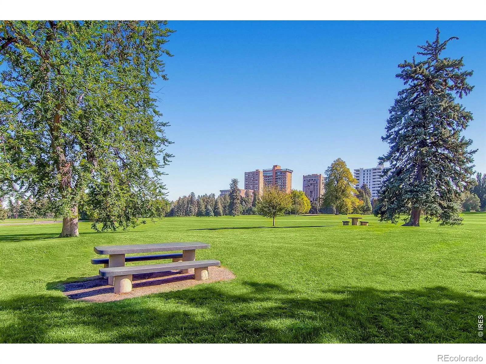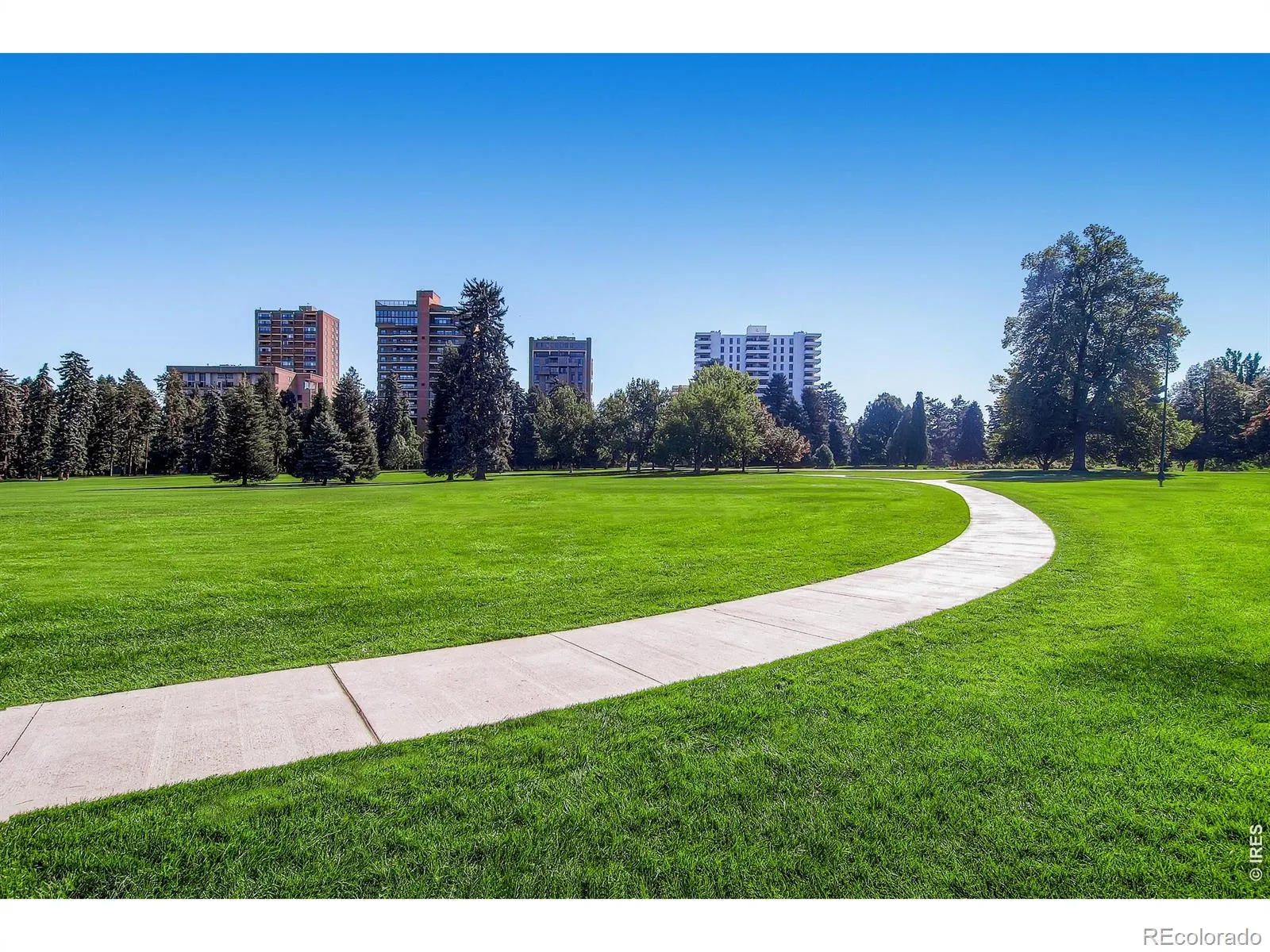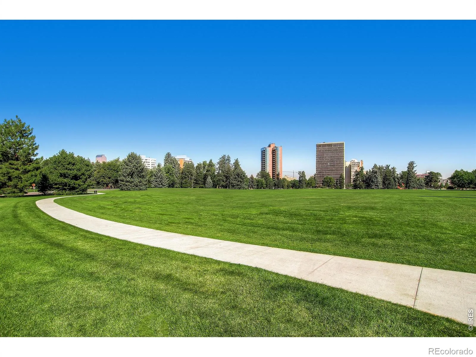Live, play, and enjoy city life at the charming and historic Williams Court Condos-steps away from Cheesman Park (1 block) & Denver Botanic Gardens! Experience one of Denver’s most vibrant and walkable neighborhoods (Walk Score 93), with easy access to Whole Foods, King Soopers, the Denver Zoo, Museum of Nature & Science, Civic Center Park, and a dynamic mix of coffee shops, restaurants, bars, music venues, and nightlife-putting the very best of city living right outside your door. Nestled in a classic mid-century brick building, this main-floor residence showcases timeless architectural details and modern upgrades, beginning with a welcoming foyer that opens into an ultra-spacious living room filled with natural light from oversized windows. Rich hardwood floors, newer paint, and a sun-bathed layout add warmth and character; creating an ideal space for both entertaining and everyday living. The open-concept floorplan flows seamlessly into the dining area and kitchen. The thoughtfully designed galley kitchen offers refined style and functionality, featuring Luxury Vinyl Plank flooring, modern lighting, freshly painted cabinetry, all-white appliances (including a 4-burner gas range), and generous countertops that provide an efficient culinary workspace. The well-proportioned bedroom easily accommodates a king-size bed and includes a walk-in closet for your wardrobe. The updated full bathroom includes a new vanity and contemporary lighting. Additional highlights include ample hallway storage closets, a secure building, basement storage, and on-site coin-operated laundry. Downtown Denver and Cherry Creek are minutes away. HOA covers heating, cooling, water, sewer, trash, insurance, and maintenance. Community amenities include a rear courtyard with a BBQ grill and a rooftop deck ideal for gatherings. Plenty of off-street parking. Take a look at this rare condo that perfectly balances timeless character, modern comfort, and an unbeatable location.