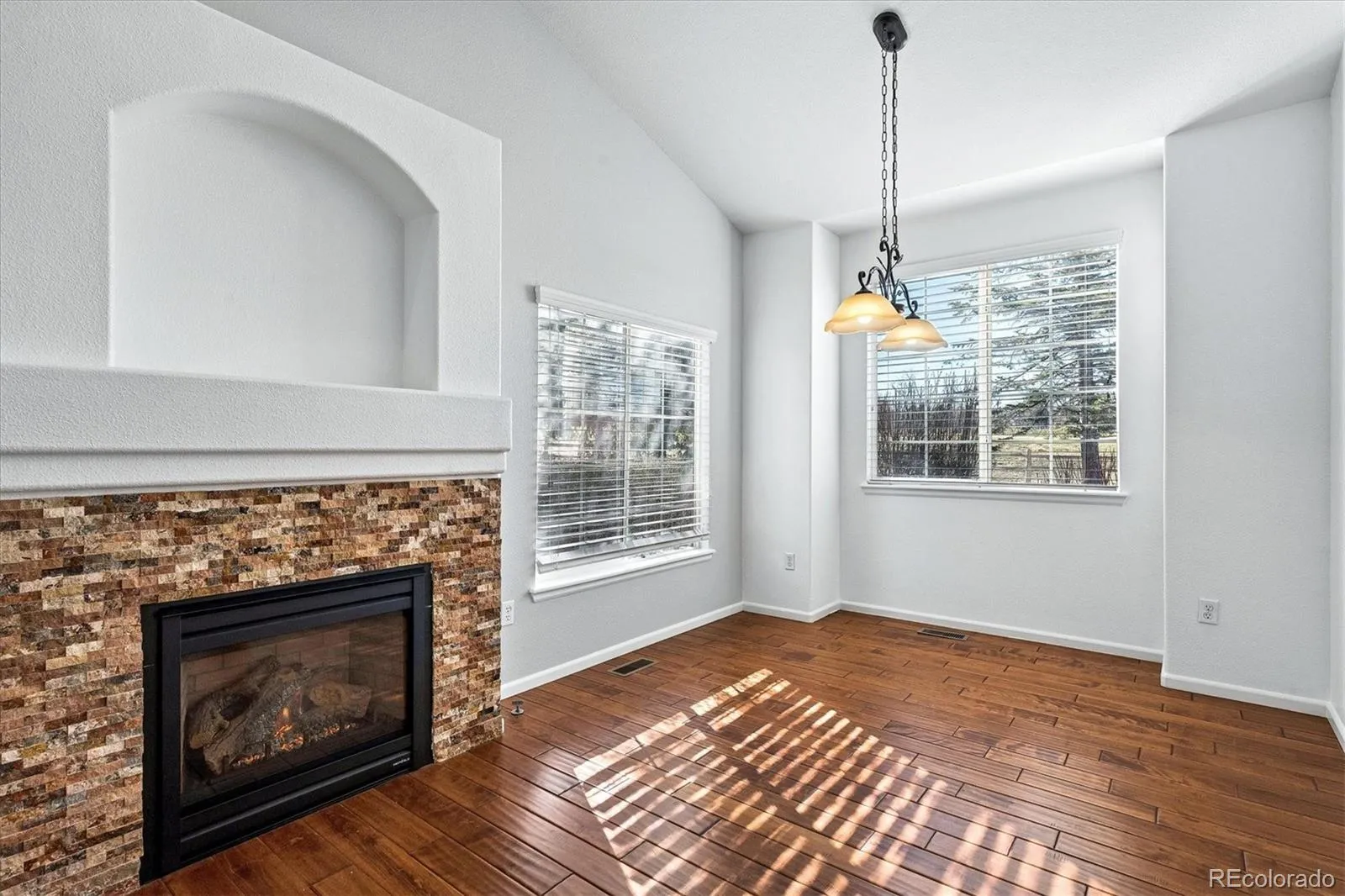 This fantastic end unit ranch backing to the golf course is paradise.Sit on the wonderful deck with a retractable awning, have a cup of coffee and watch the golfers.You do not want to miss out on this unit, lots of bells and whistles.Hardwood floors, granite countertops, gas fireplace, new exterior paint, finished basement,3/4 bath.The exterior was just painted, new roof and gutters as well all covered by the HOA.This is a great smaller community in a super location close to highways, stores, trails and much more.A REAL KEEPER!!