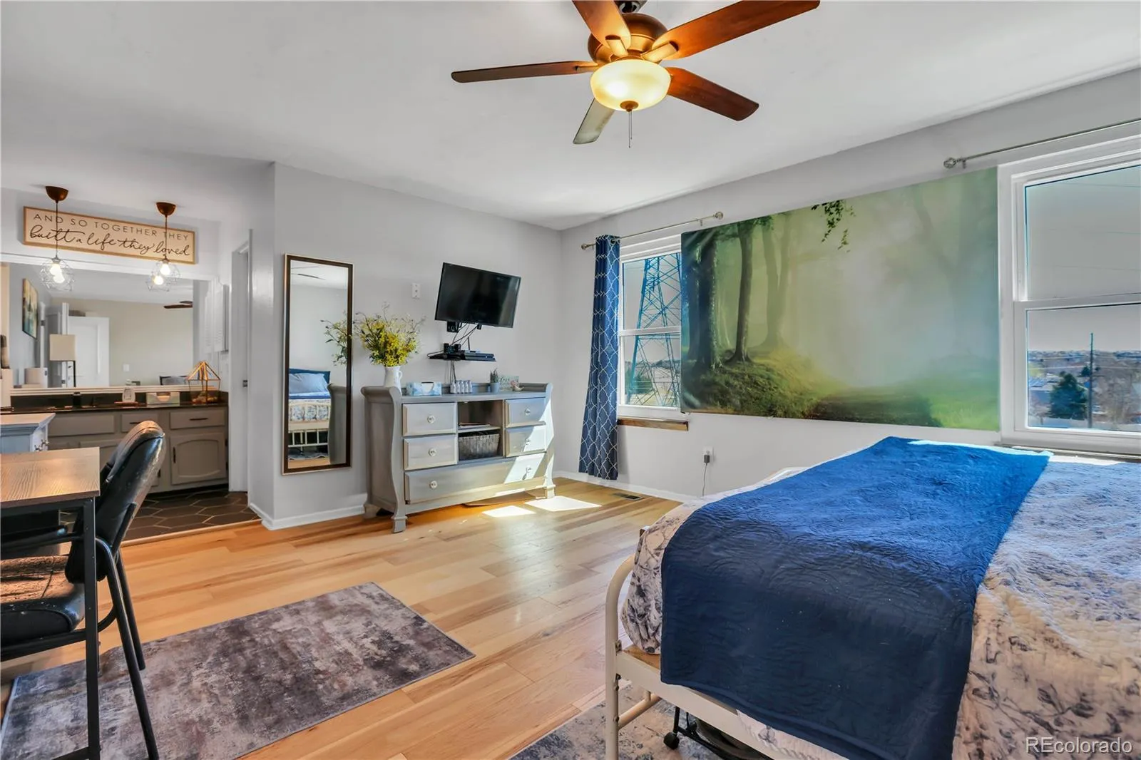 Step into this surprisingly spacious 4-bed, 3-bath home packed with features you’d expect to find in a much higher-priced property. Enjoy a full-sized living room with a cozy wood-burning fireplace, plus an extra-large family room with its own fireplace—perfect for gatherings, hobbies, or spreading out in style. This home offers two primary bedroom suites, each with its own ensuite bath, along with two additional bedrooms and a third full bathroom. The sunny, south-facing kitchen brings in tons of natural light, and the large dining room, high ceilings, and solid hardwood floors create an inviting, open feel throughout. Major upgrades are already done for you, including newer paid-off solar panels, newer Hardie Board siding, newer windows, newer Class 4 impact-resistant shingles, complete radon mitigation system, multiple ceiling fans, an evaporative cooler, and a full appliance package. Sitting on an impressive 11,543 sq ft lot, this property features a nicely landscaped front yard, an oversized 2-car garage, and a huge backyard with endless potential. This is the perfect opportunity for buyers wanting big space, big upgrades, and big value.
