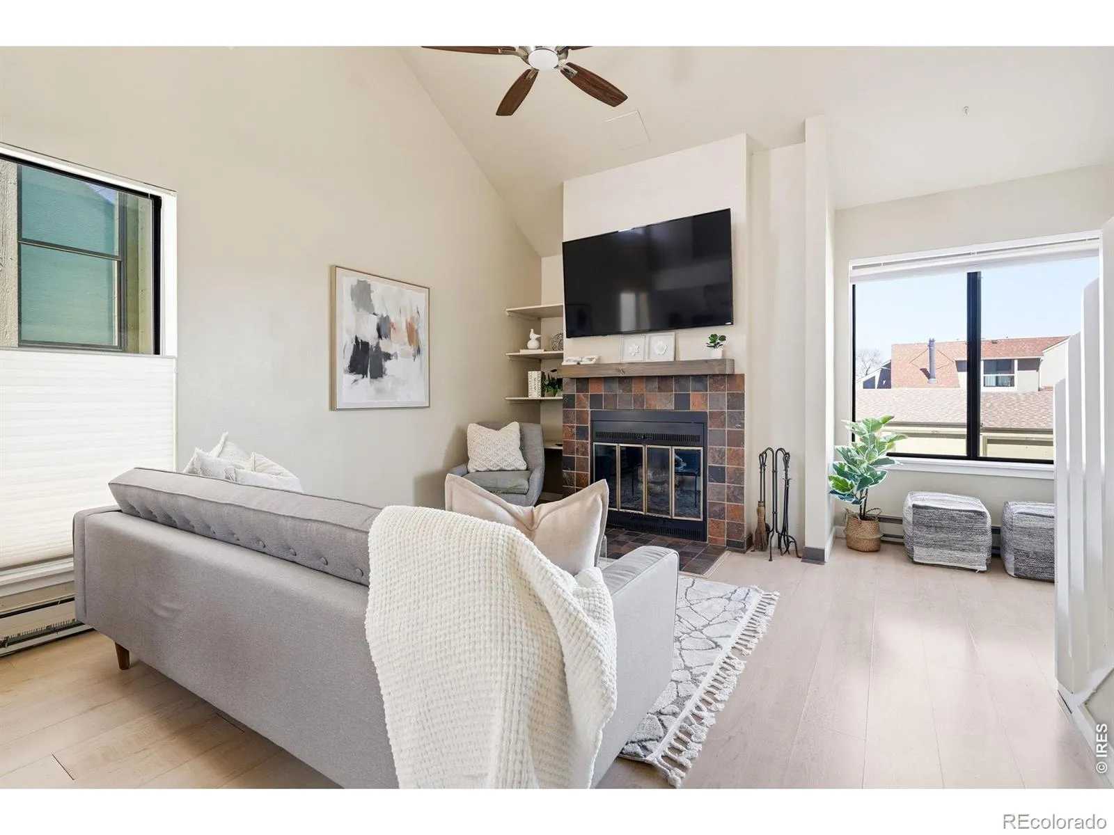 Welcome to this rare gem in Shanahan Ridge-a serene retreat nestled just steps from Boulder’s stunning open space. This end-unit offers 2 bedrooms, 2 bathrooms, and a versatile loft that is great for a home office, yoga space, or reading nook. The thoughtful layout includes a main-level bedroom and bath, while the second bedroom upstairs enjoys inspiring Flatiron views. Upon entering, you’ll find an inviting family room filled with natural light, a cozy wood-burning fireplace that adds warmth and charm, while the deck beckons you to relax and soak in the tranquility of Shanahan Ridge Park. Upstairs, the primary suite is a true retreat, complemented by a loft that can flex to suit your needs. This home also includes a one-car detached garage, and the HOA covers water, sewer, trash, landscaping, and even provides Eco Passes for owners, making life here wonderfully convenient. Right outside your door are the beautiful South Boulder Trails and this home is within walking distance to the shops at Table Mesa and the Skip Bus Stop. Don’t miss your chance to experience the best of Boulder living in this exceptional Shanahan Ridge condo!