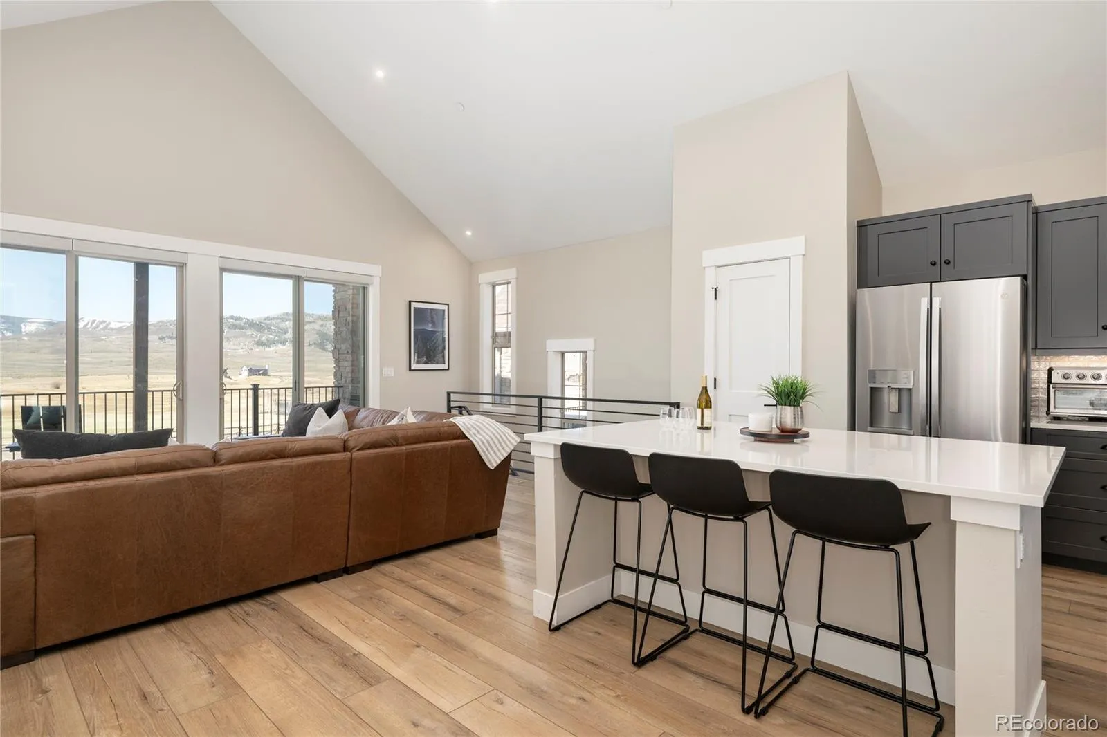 Watch video! This 4-bedroom, 3.25-bath townhome offers a thoughtfully designed living space with a 2-car attached garage. As an end unit, it features abundant natural light from extra windows and in-floor radiant heat throughout. The entry level includes two bedrooms, a full bath, laundry room with sink, and a drop zone with cubbies near the garage. Upstairs, enjoy a vaulted great room with gas fireplace that flows seamlessly to a spacious covered deck overlooking the Grand Elk Golf Course and mtns. The kitchen boasts a quartz breakfast bar and stainless steel appliances including a gas range. The primary suite features a luxurious steam shower in the ensuite, plus a 2nd bedroom suite on this level. Priced right and not a rental. HOA incl. Golf, pool and hot tub – review document section!