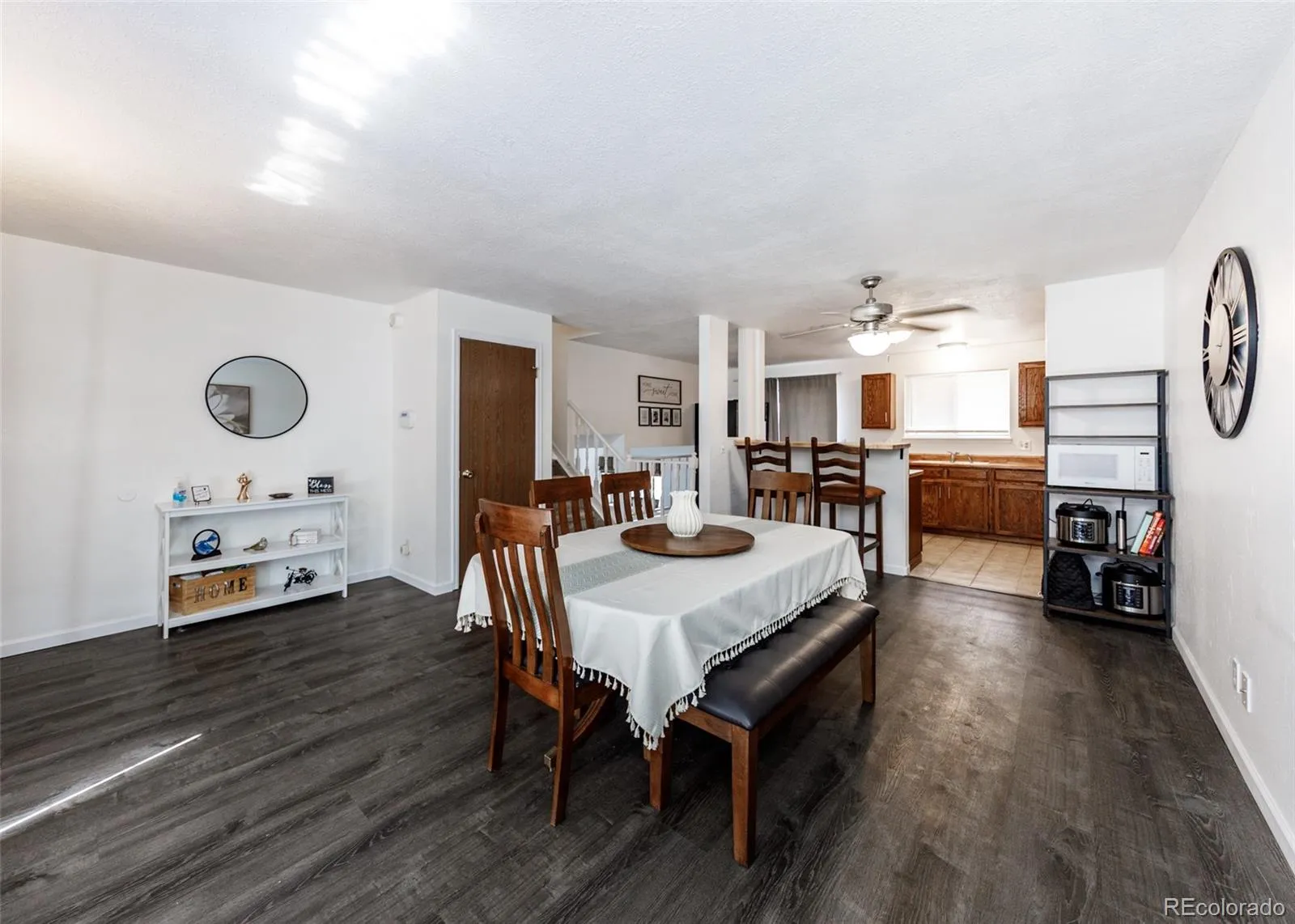 Welcome home to this spacious and well-designed property featuring 3 bedrooms and a full bathroom on the upper level. The main level offers an open-concept layout with a large dining area and kitchen, creating a functional and inviting space for everyday living. The lower level includes a cozy family room with a wood-burning fireplace, an additional bedroom, and a 3/4 bathroom—ideal for guests, a home office, or multi-generational living. The finished basement provides a versatile recreational area perfect for a home gym, playroom, or media room. Enjoy outdoor living on the expansive back deck overlooking a large yard, perfect for entertaining or relaxing in Colorado’s beautiful climate. Conveniently located near parks, shopping, and everyday amenities, with easy access to everything the area has to offer.
