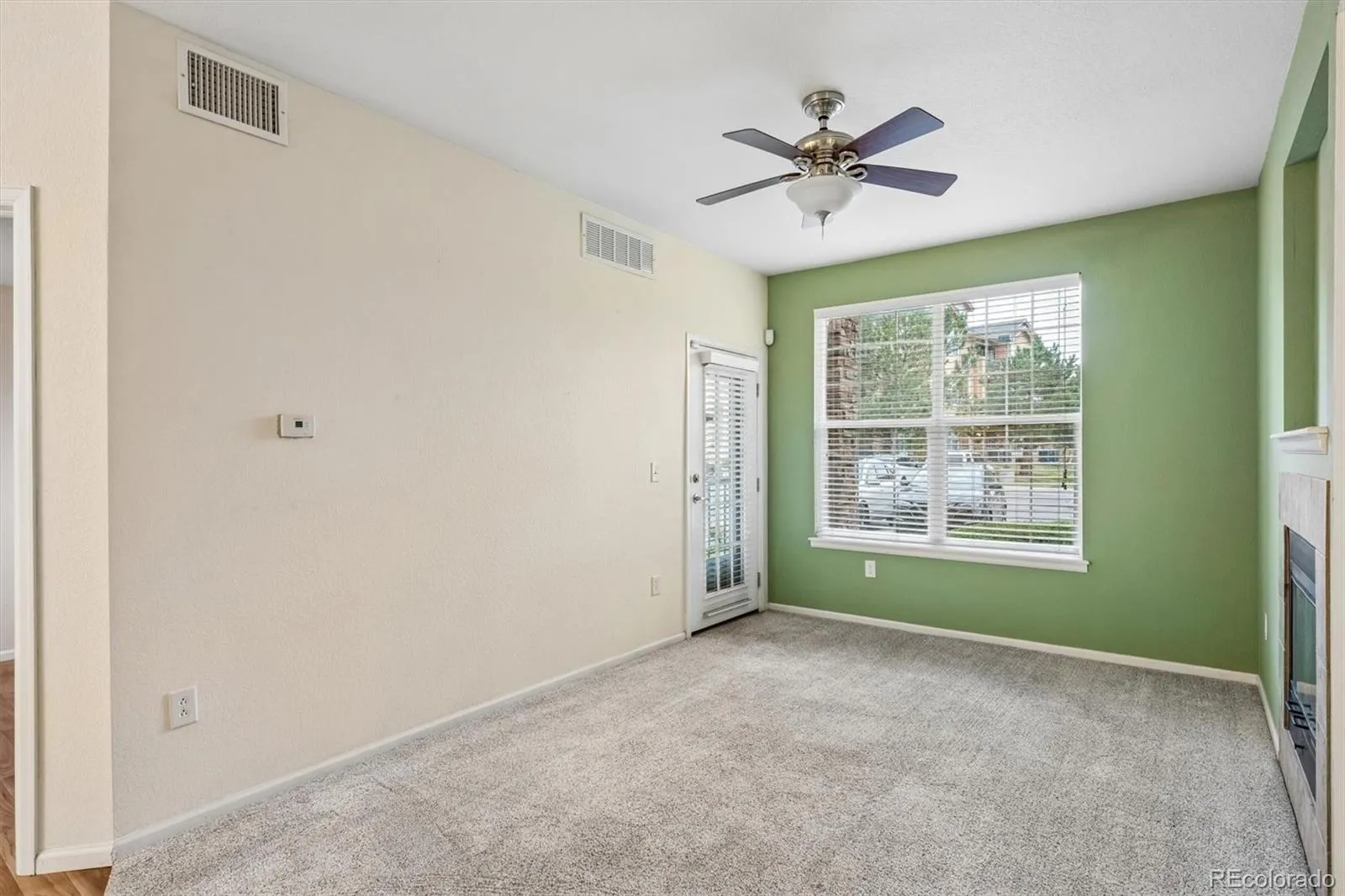 Ready for move in! Nicely appointed main floor condo has a reserved parking space directly in front. Well maintained 2 bedroom 1 bath unit. Kitchen has granite counters and includes all appliances. Laundry is located in closet next to kitchen, includes washer and dryer, there is space to install cabinets to create a pantry. Primary bedroom has a walkin closet, 2nd bedroom is currently set up as an office. Full bath is oversized and has granite counter. Gas fireplace. Easy living this complex thas has a clubhouse, fitness center and pool. Convenient location to recreation with a nearby park and trails, close to shopping, easy access to E470.
