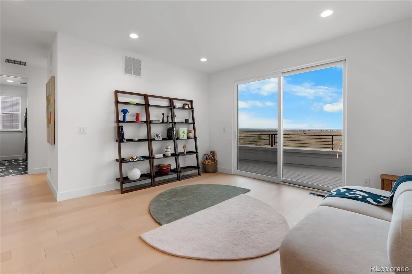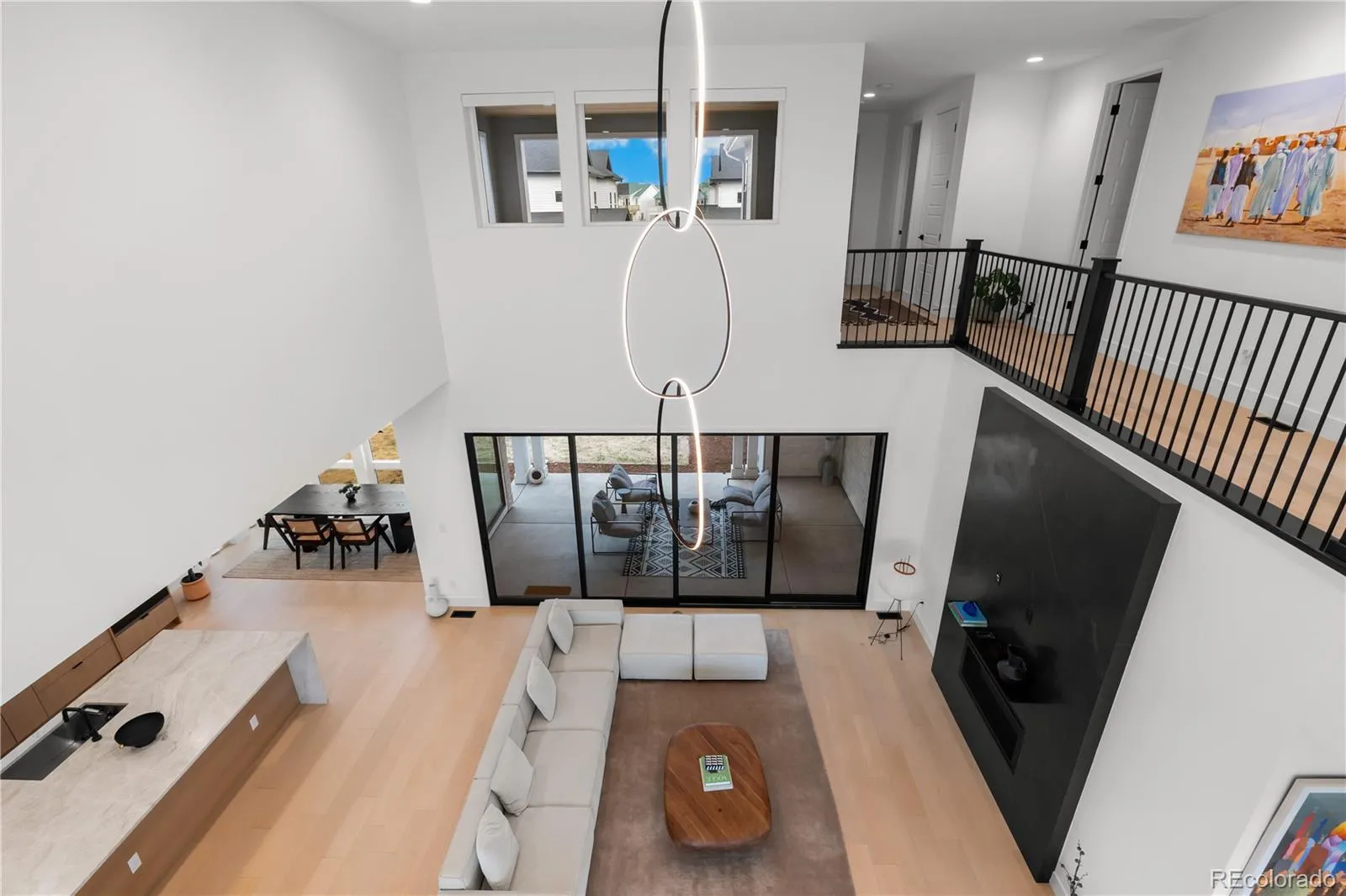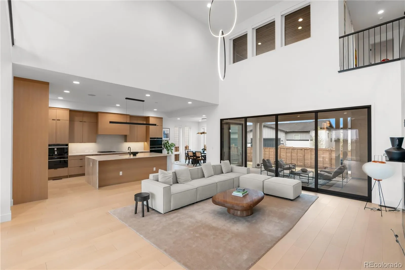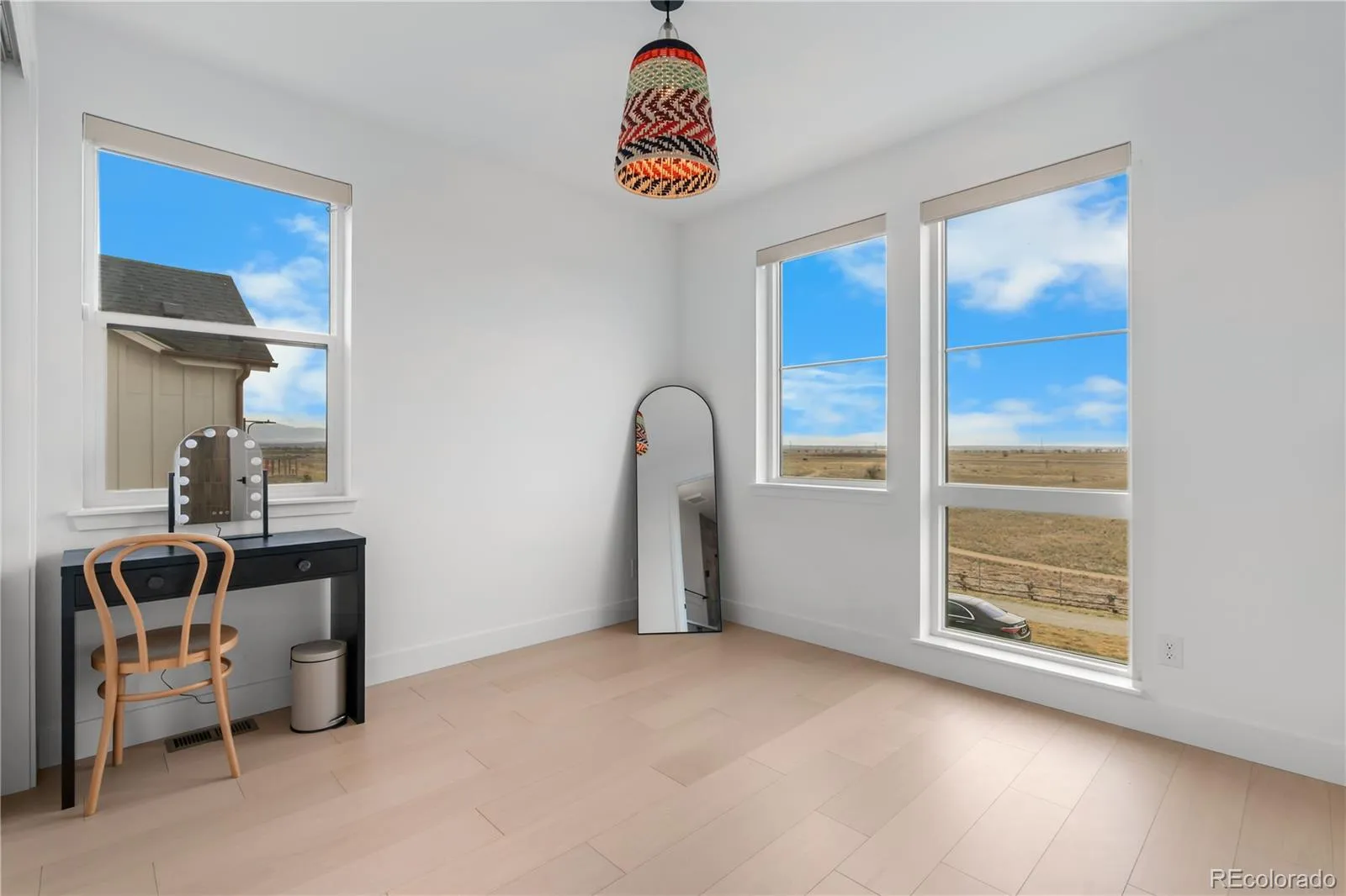 Upstairs, the primary suite is a private sanctuary, mountain views, a custom walk-in closet with center island, floor-to-ceiling built-ins, and a spa bath with an oversized glass shower and soaking tub. A sprawling open loft opens to a private balcony overlooking the Rocky Mountain Arsenal National Wildlife Refuge. Five additional ensuite bedrooms, a generous upstairs laundry room, and a finished basement with cinema, dedicated gym, included equipment, and a private bedroom suite make every level of this home as functional as it is beautiful.