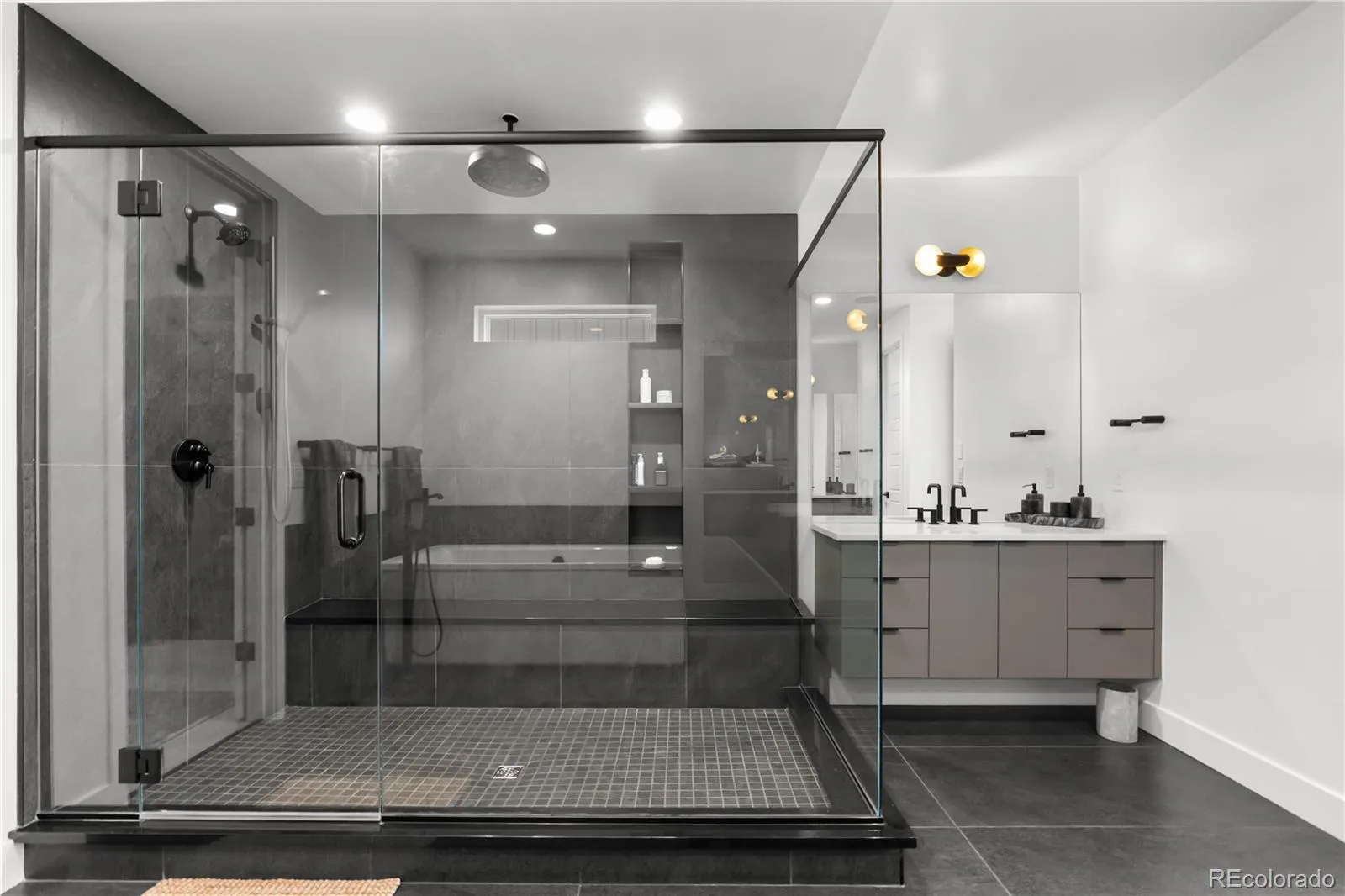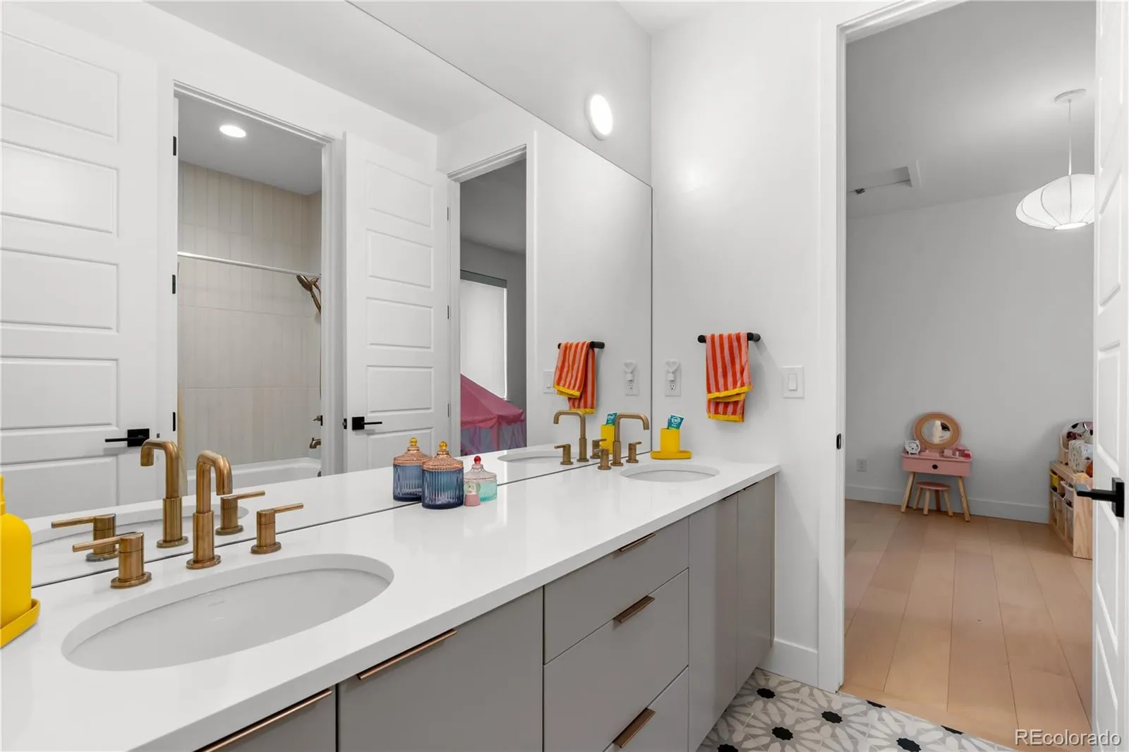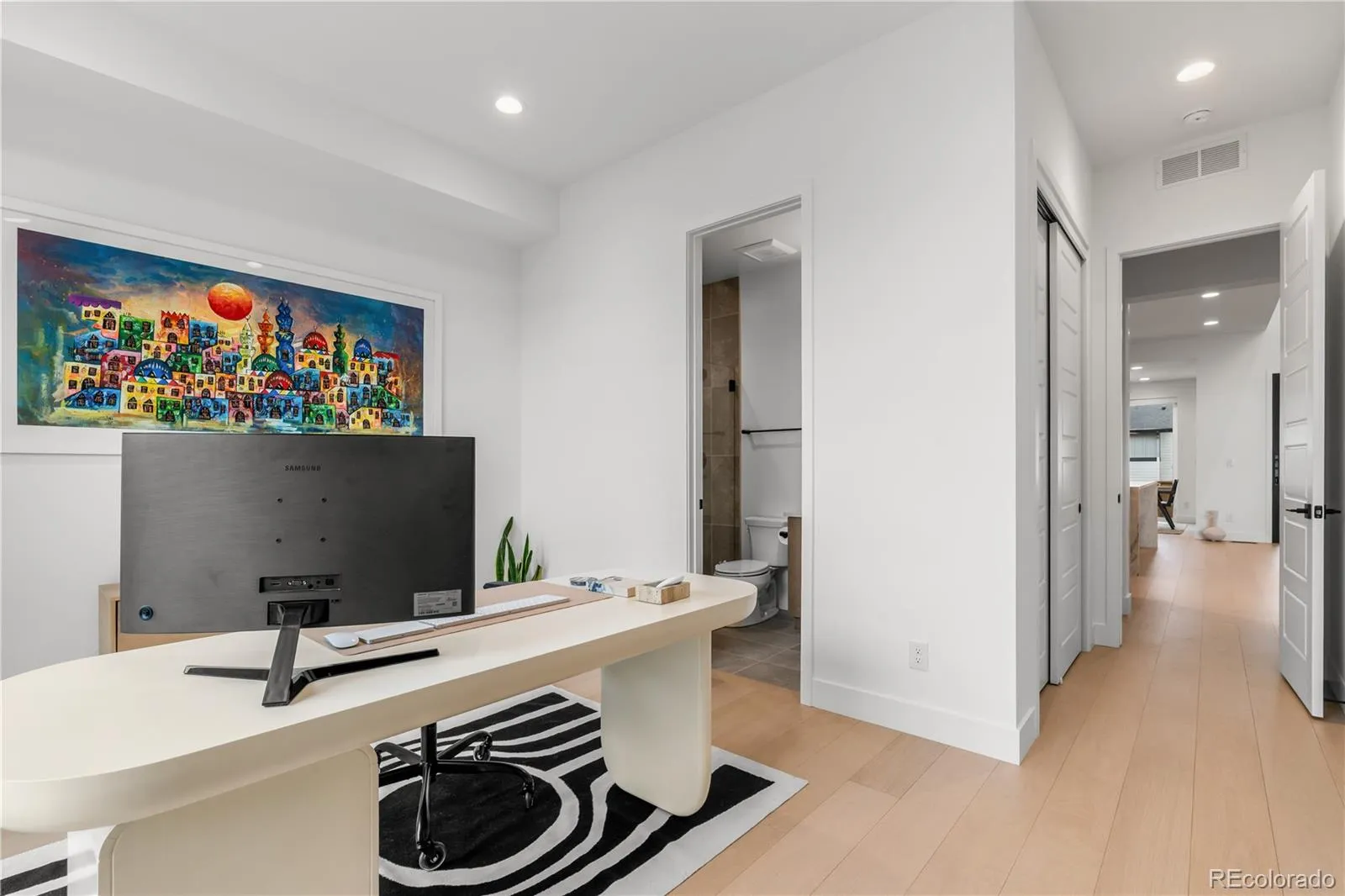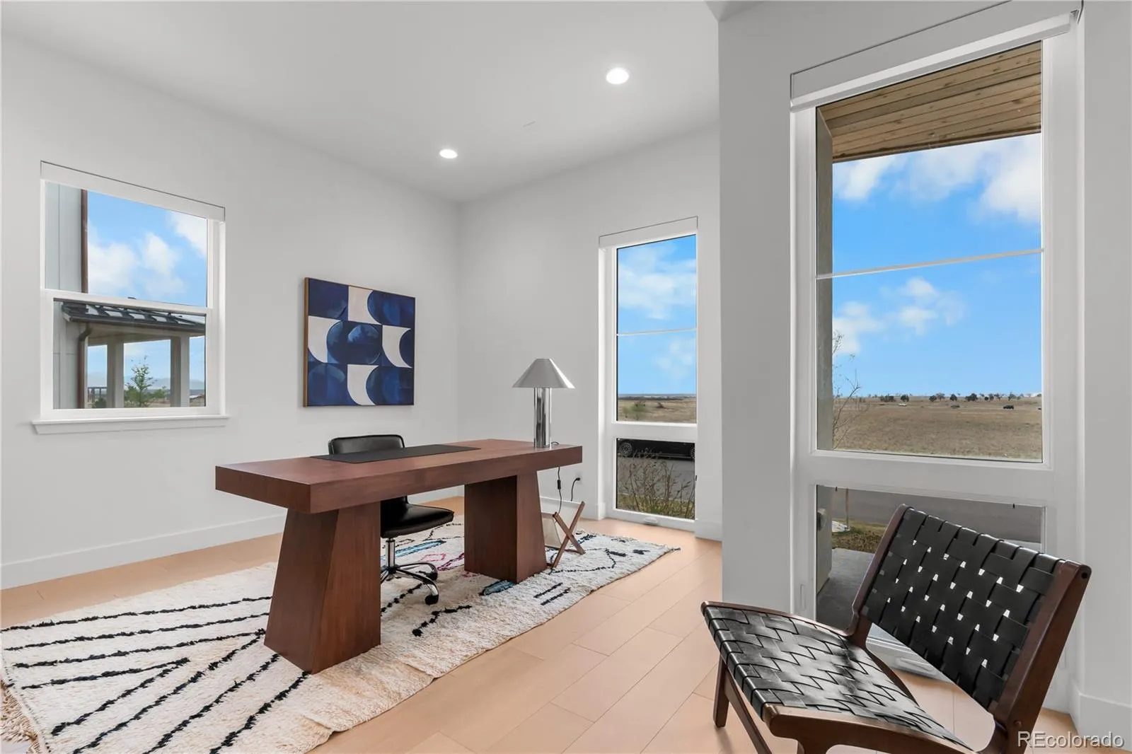 Upstairs, the primary suite is a private sanctuary, mountain views, a custom walk-in closet with center island, floor-to-ceiling built-ins, and a spa bath with an oversized glass shower and soaking tub. A sprawling open loft opens to a private balcony overlooking the Rocky Mountain Arsenal National Wildlife Refuge. Five additional ensuite bedrooms, a generous upstairs laundry room, and a finished basement with cinema, dedicated gym, included equipment, and a private bedroom suite make every level of this home as functional as it is beautiful.