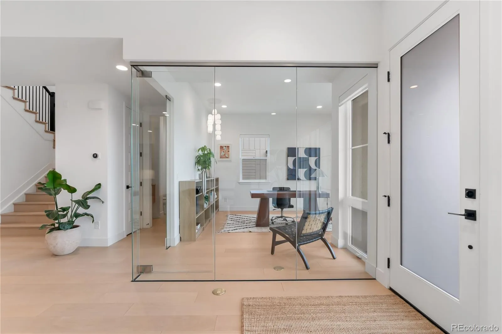 From the moment you arrive, contemporary white rock landscaping and commanding curb presence set the tone. Inside, soaring ceilings and premium engineered hardwood floors span the first two levels, anchored by a Neolith tile fireplace, a glass-enclosed office, a Taj Mahal quartzite powder room, and curated designer LED lighting throughout. The chef’s kitchen delivers a dramatic leathered quartzite waterfall island alongside a full Wolf and Sub-Zero appliance suite, including a built-in espresso maker, induction oven, and steamer. Control4 smart home automation, whole-home humidification, automatic blinds, pre-wired routers, and built-in surround sound with over nine speakers complete an effortlessly intelligent living experience.