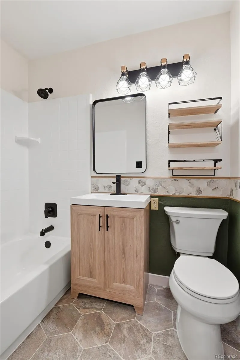 Welcome to this charming, fully renovated 2-bedroom, 2-bathroom home in Westminster, offering 884 square feet of thoughtfully designed living space that perfectly blends comfort and functionality. Step inside to an inviting, light-filled interior featuring luxury vinyl plank flooring throughout, creating a warm and modern atmosphere. The stylish kitchen showcases eye-catching green cabinetry, ample countertop space, and a sleek tile backsplash, making it as practical as it is beautiful. The main level also includes a convenient powder bathroom and an in-unit washer and dryer. The bright and spacious primary bedroom features a walk-in closet, while the second bedroom offers versatility for guests or a home office. The full bathroom is tastefully finished with a modern vanity, tiled shower with tub, and floating shelves for added storage. Outside, the fenced backyard with a patio provides the perfect space to relax and enjoy Colorado’s beautiful seasons and the home includes a reserved parking spot for added convenience. Ideally located with easy access to parks, recreational areas, shopping, and dining, this home offers the perfect opportunity to embrace the vibrant Westminster lifestyle.