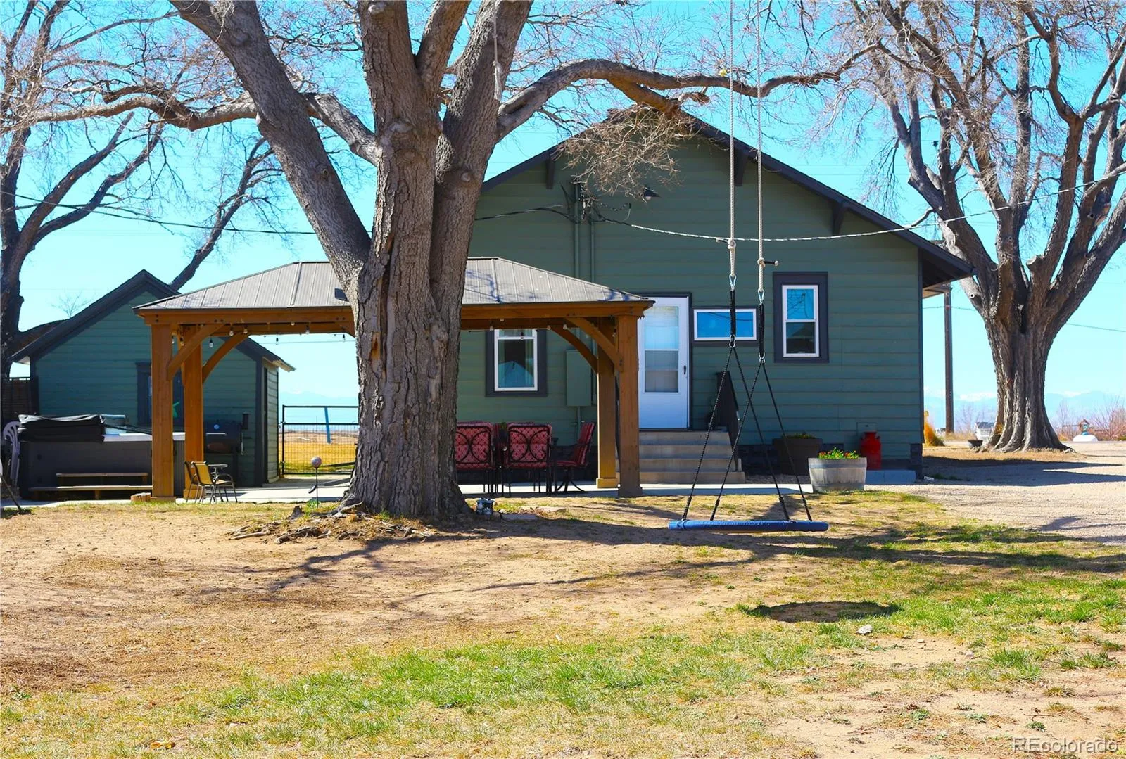 Price REDUCED! This could be your NEW home! Updated 3 Bed, 1 large Bath home located in a peaceful, quiet, rural agricultural area on over an acre with a 3 minute commute to Hwy 85! Large, Eat-in Kitchen, w/New stainless appliances, Gas stove for the chef in your life, and gorgeous custom-built wood butcher-block countertops! Samsung stackable Washer/Dryer in Laundry room. New Roof on house and garage! Electrical system upgraded to 220 Volts for the six person whirlpool spa/hot tub and also available for use at rear of 4 car garage/workshop! Awesome outdoor eating space with large covered gazebo on a huge concrete patio area! Sellers were planning to make the old well house/storage building in to a Tiki Bar! Plenty of room for friends and family dining and FUN! Large fenced garden area (58 X 25) w/water line Spigot for watering the garden. Three total Spigot lines all connected to main water line. Insulated Construction Office/Utility Trailer(32 x 10) w/heat available by just plugging in to the 220 outlet located at the rear of the garage next door. Sellers currently using Construction Trailer 1/2 for Storage, 1/2 for cozy pet housing 2 cats and 1 dog. Pets kept warm in their insulated, custom houses w/heat lamps set up in winter. Deck off Construction Trailer (32′ X 11′). Fully fenced Dog Run (26′ x 15′). Incredible amount of level usable space on this 1.07 Acre parcel for parking trucks, boats, RV’s,campers, anything you may need to park or store! Room to build a huge barn! Several neighbors live/work in the area and park their large diesel trucks on their property. Property is Zoned Agricultural so many uses available! District Regulations cover this location. With NO HOA, have the freedom to make this property your own! Located just minutes from Greeley and Hwy 85, this home offers the BEST of both worlds – Privacy and Space, with convenient access to cities and towns if needed. Check this home out!