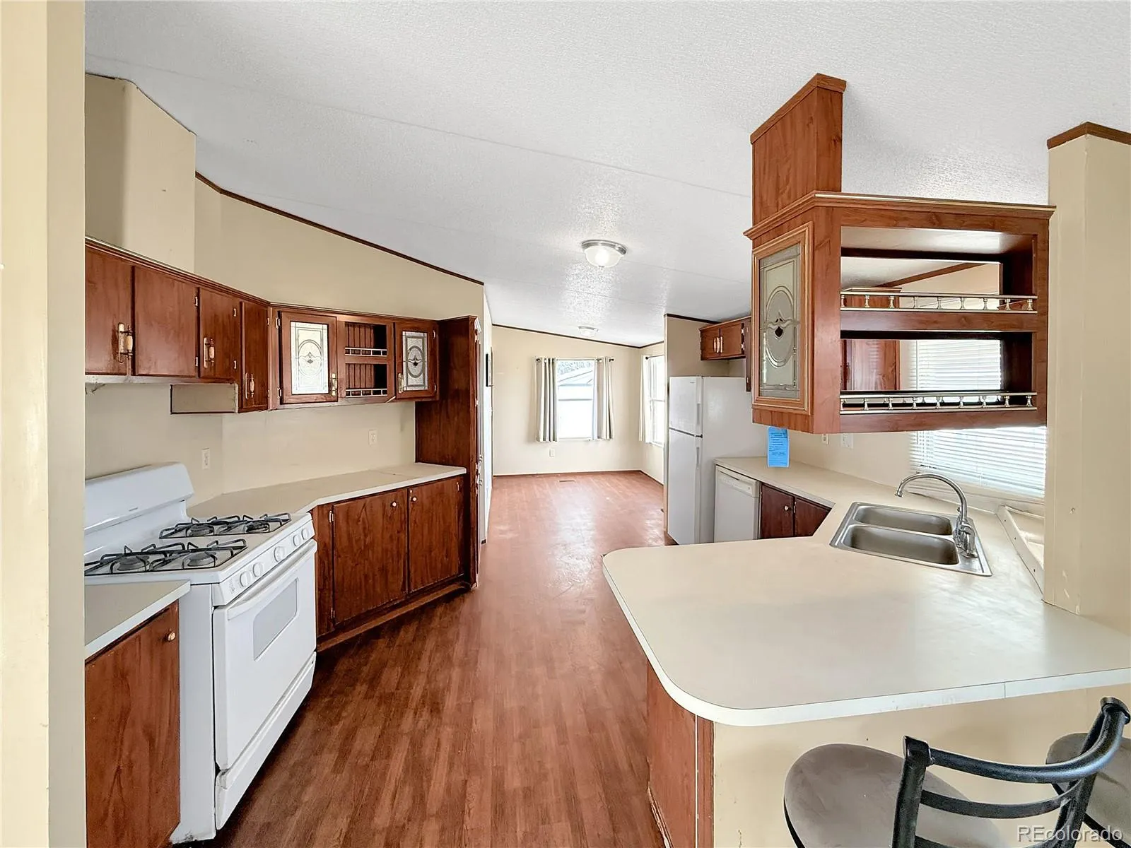 Welcome to this ranch style 4-bedroom, 2-bathroom manufactured home situated on a spacious corner lot at 104 Pine Street. The thoughtfully designed layout features three bedrooms and a full bathroom on one side of the home, offering privacy and convenience for family or guests. The primary suite serves as a comfortable retreat, complete with a private 5-piece ensuite featuring double sinks, a soaking tub, and a separate shower. All appliances remain with the property. Outside, the property offers exceptional versatility with a detached garage/carport boasting five bays—three with roll-up doors and one with concrete flooring—ideal for vehicles, storage, or workshop space. A utility shed and an additional outbuilding, perfect for a greenhouse, add even more functionality. Located on a large corner lot, there is ample room for expansion, gardening, or outdoor living. Call today to schedule your showing!
