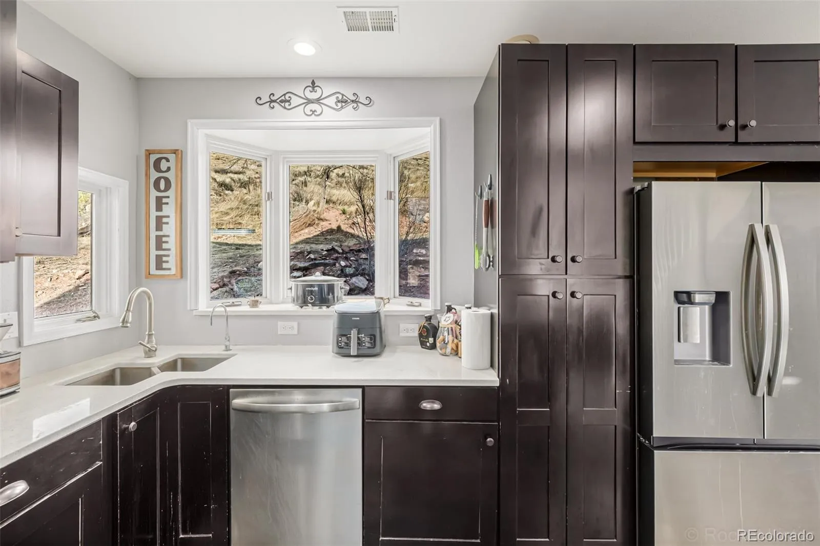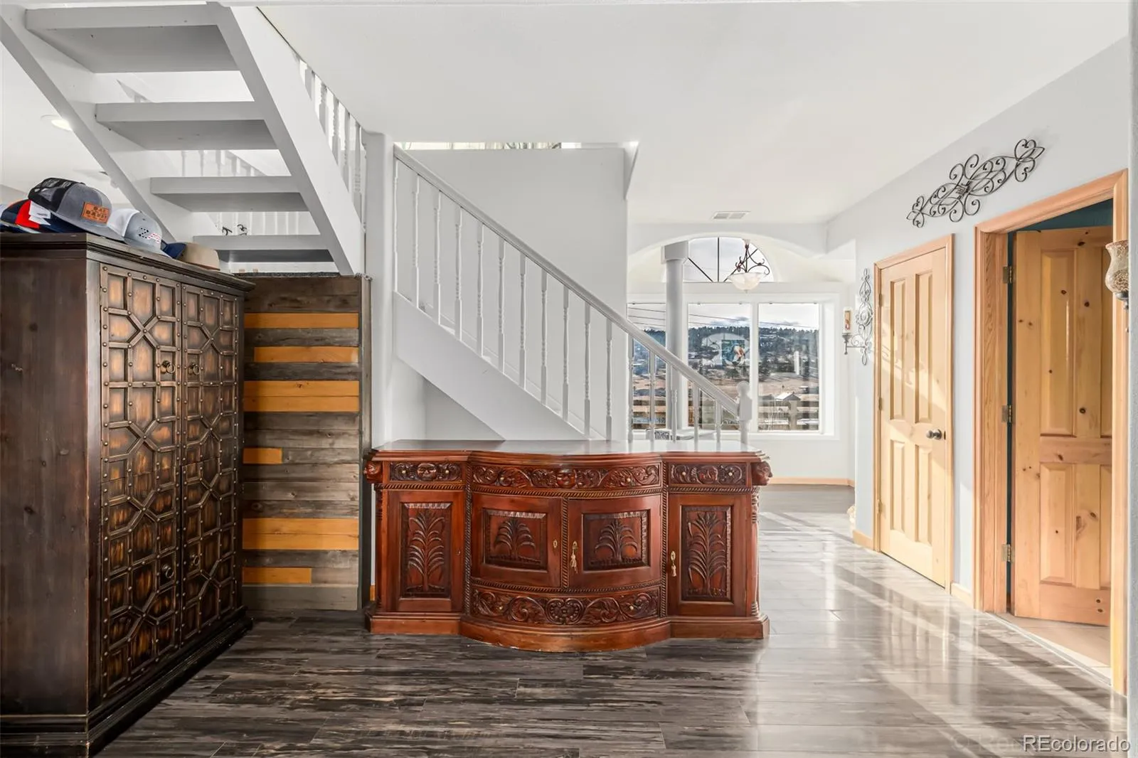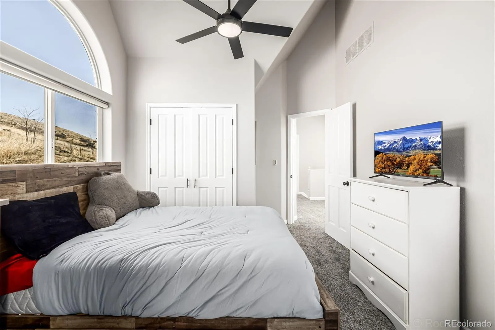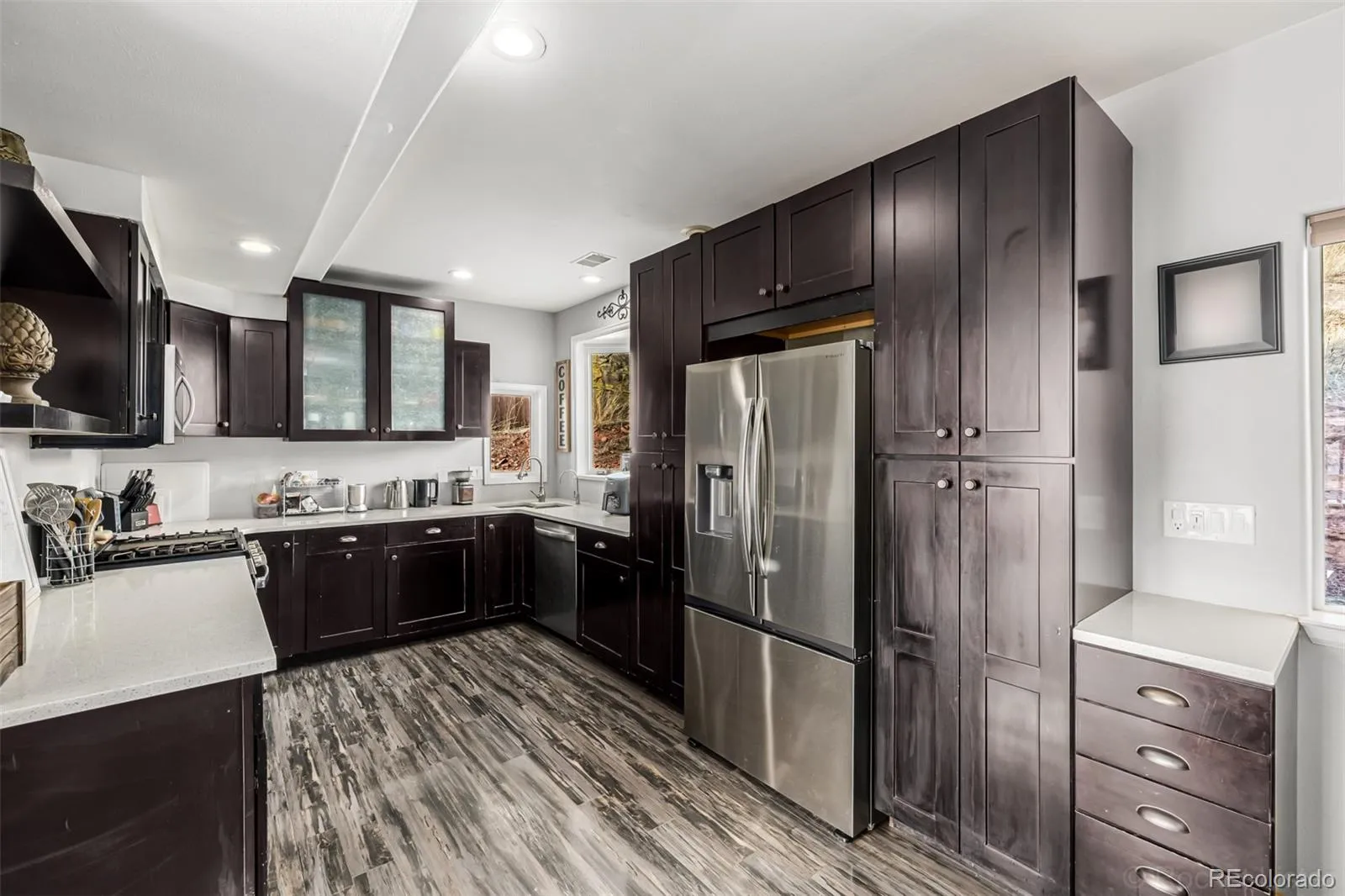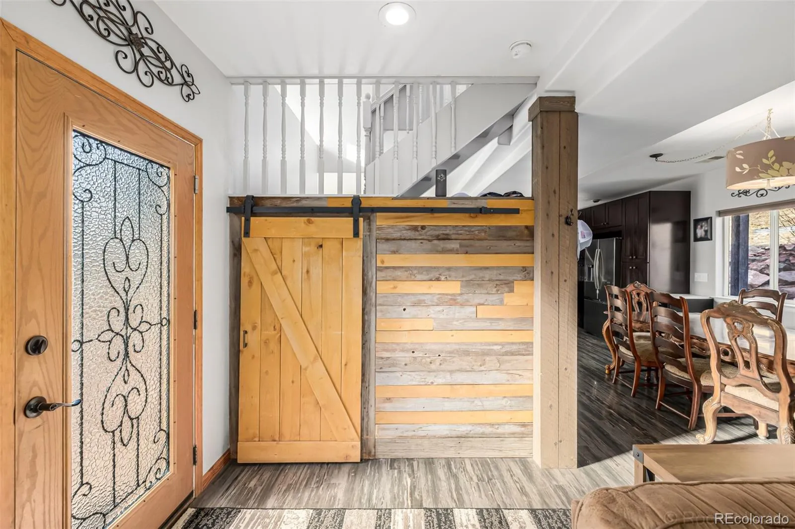 Discover this fantastic 3 bed, 3 bath residence now available in Carter Lake Valley, offering beautiful mountain views and a warm, inviting setting. The property features a charming front deck, a detached 1-car garage with a cozy loft, and a thoughtfully designed exterior. Inside, you will find spacious dining and living areas with elegant wood-look flooring, track and recessed lighting, a neutral palette, and a wood-burning stove that adds comfort and character during the winter months. The kitchen is well-appointed with espresso cabinetry, quartz countertops, and stainless steel appliances, ideal for everyday living and entertaining. Upstairs, the primary suite features plush carpet, vaulted ceilings with skylights, and a full bathroom with dual sinks. The backyard offers a private retreat with a hot tub, creating the perfect space to relax and unwind.