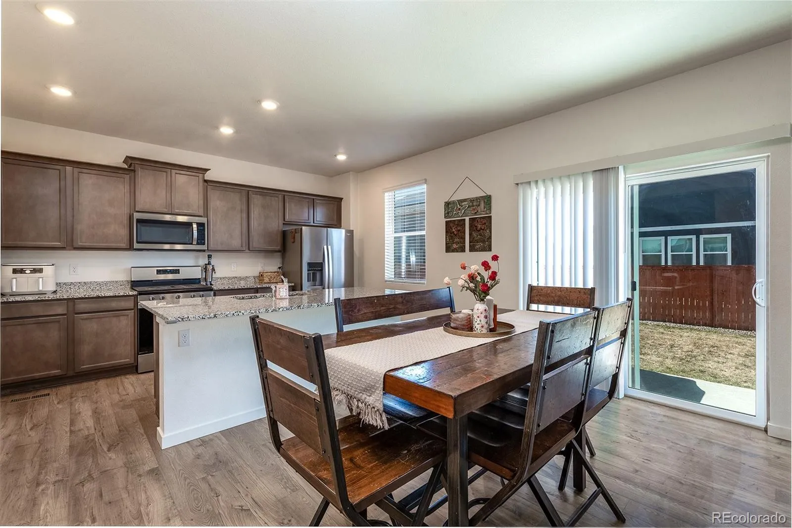 Welcome home to this beautifully maintained residence, ideally located just steps from the park and trails—offering the perfect blend of comfort, space, and outdoor living. A charming covered porch welcomes you into an inviting foyer, where you’ll find a spacious private office, a convenient powder room, and a practical mudroom area with a coat closet. The main level opens into a bright and airy great room and dining space, complemented by a spacious kitchen featuring a center island and walk-in pantry—perfect for everyday living and entertaining.