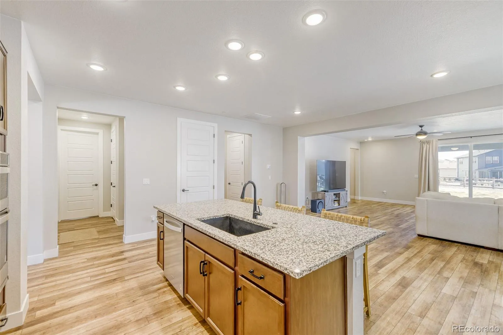 Pulte Homes has sold out in the Aurora Highlands new premier neighborhood in Aurora. Here is your chance to own the Manzanita ranch plan, their most popular model fully fenced and landscaped at a great price. This 3 bed 2 bath with study is a perfect work from home open floor plan complete with great Colorado outdoor living on your covered patio. One of the best lots Pulte offered with good rear spacing was built from a dirt start with the current owners selecting great finishes at the design center. The spacious kitchen with oversized island has a Chefs Gourmet stainless appliance setup with lots of beautiful cabinet space. This opens up to the Cafe and Gathering Room for the perfect social entertaining space, then this opens up to the large family room which leads to the outdoor living space. One large space with so many options to make your own flow. Large baseboard, 9 foot white ceilings and 8 foot doors make the whole house pop from room to room. Master bedroom offers an ensuite bath with large walk in shower, a huge walk in closet and great finishes throughout. Two more bedrooms with full bath and a large laundry room round out this Colorado Ranch style living area. Now go down to the full 2129 square foot unfinished basement ready for your custom finish that would come close to doubling the size of this home. New roof recently installed with industry leading Malarkey Legacy Class 4 hail impact rating shingles could save you on insurance now and in the future. Owners paid extra to do their best to prevent future claims. Made better to last longer for you, check the product online, a real benefit. Come see and own this beautiful home in an up and coming community with easy access to DIA/Denver, outstanding schools, shopping , pools, trails and parks. The Aurora Highlands, come visit and own today!! Pictures to be uploaded 03/31/26 afternoon.