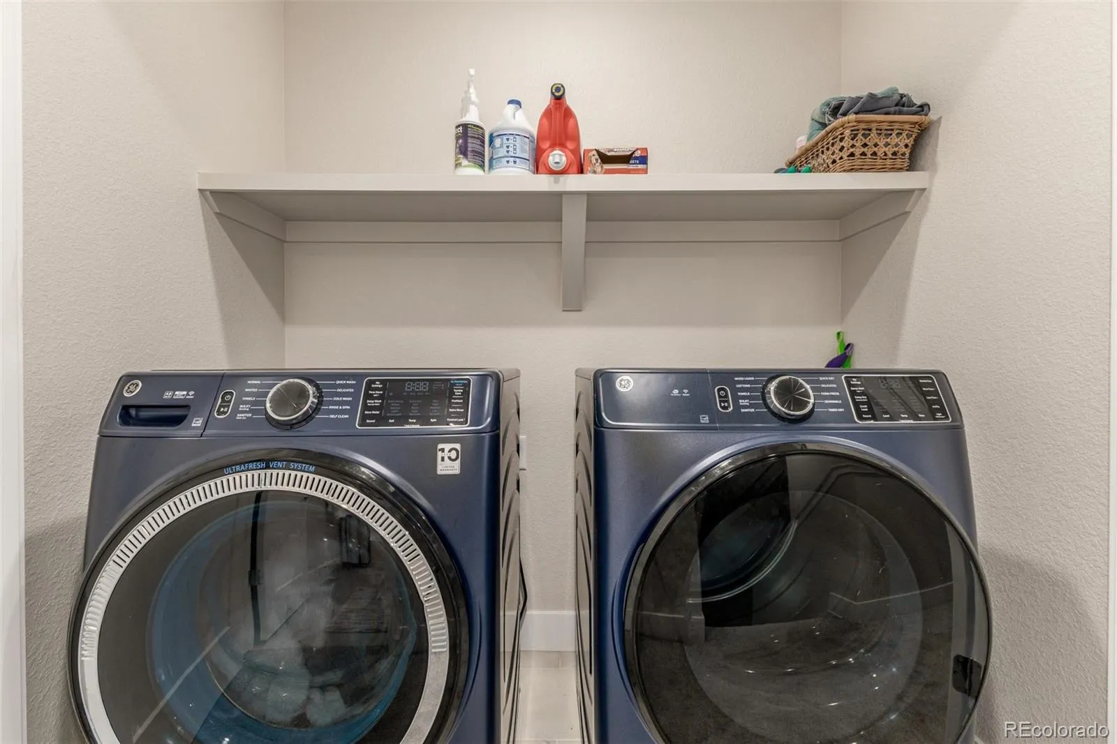 This is the one – Beautifully built in 2025, this two story townhome in Midtown at Clear Creek offers modern design, smart technology, and low maintenance living just 5 miles from Downtown Denver. This 3 bedroom, 3 bathroom home features an open concept floor plan with high ceilings, abundant natural light, and expansive windows. The main level includes a spacious living room with gas fireplace (70 inch Samsung TV included), dining area, and a chef inspired kitchen with a large quartz island, stainless steel appliances, gas range, pantry and a very large closet with ample storage wrapping under the staircase. A main floor powder room is tucked away by the attached 2 car garage. You’ll enjoy the spacious, fully fenced front patio. Perfect for entertaining. The HOA is responsible for exterior landscaping and even snow shoveling the walk to your front door.