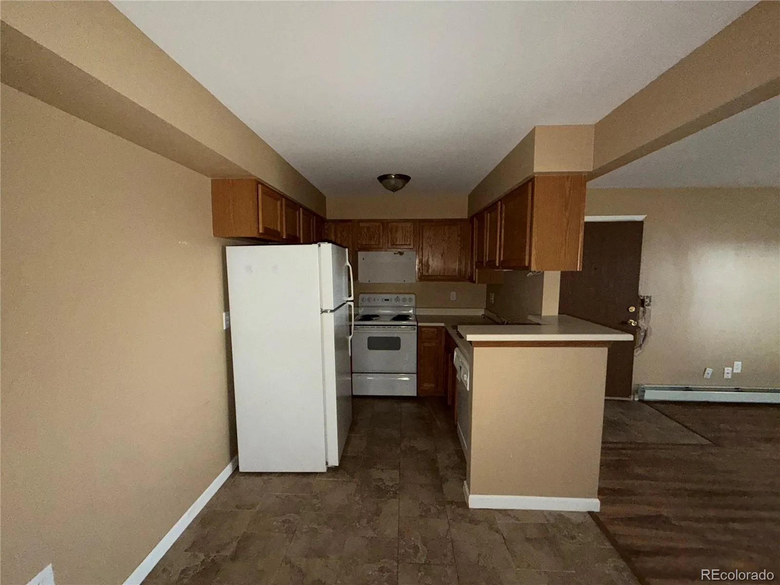 Bright, open, and full of potential—this ground-level 2-bed, 2-bath condo in a gated Oak Park community offers a layout that just works. Natural light fills the living space, anchored by a cozy fireplace and a seamless open floorplan that flows to a private patio—ideal for everyday living or easy entertaining. The kitchen provides solid workspace and storage, while both bedrooms offer generous proportions and closet space. In-unit laundry adds convenience, plus an assigned parking space. Community amenities include pool, clubhouse, tennis courts, and green spaces. The home shows deferred maintenance and some outdated finishes, reflected in the price—perfect for buyers looking to personalize and add value in a well-located Denver setting.