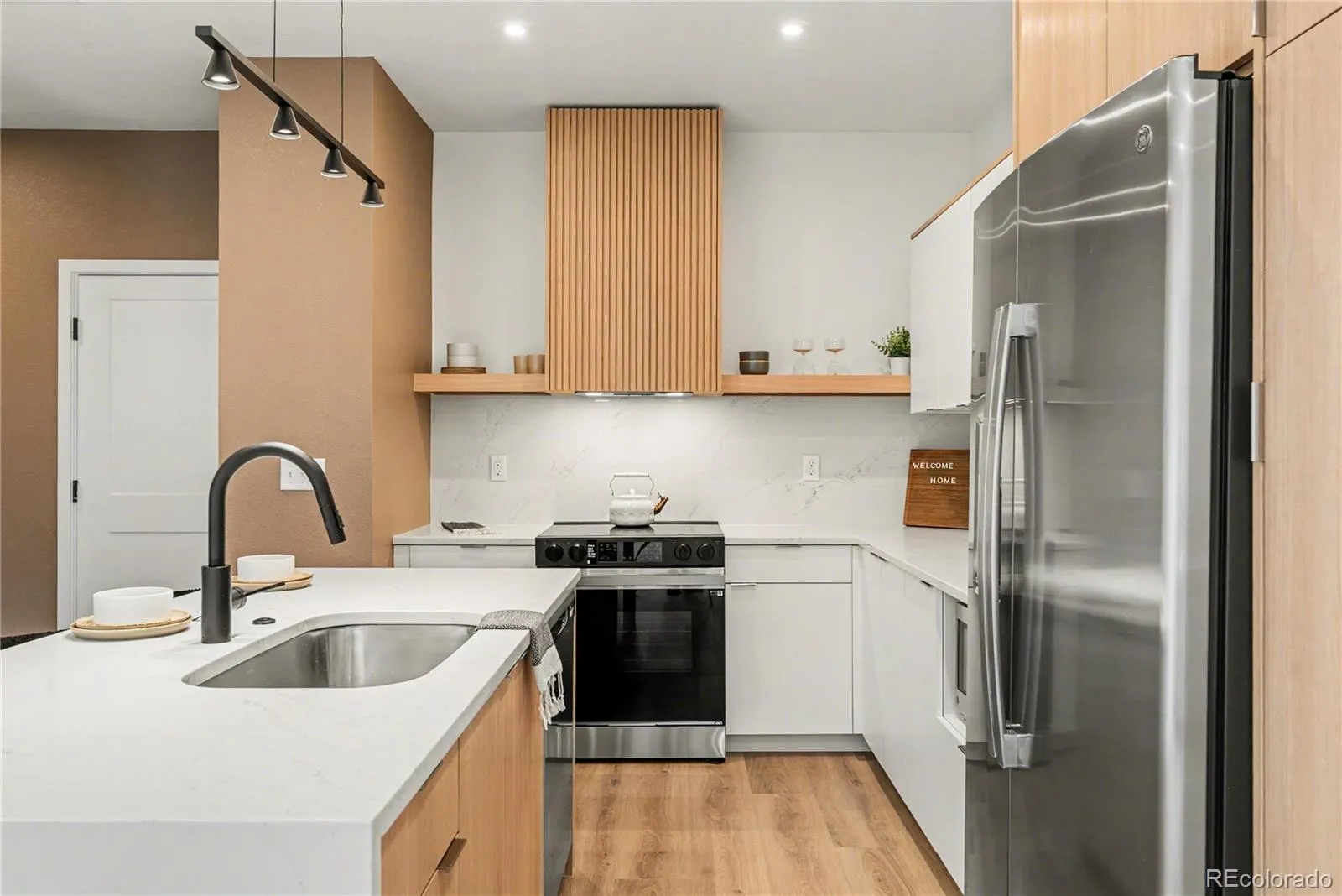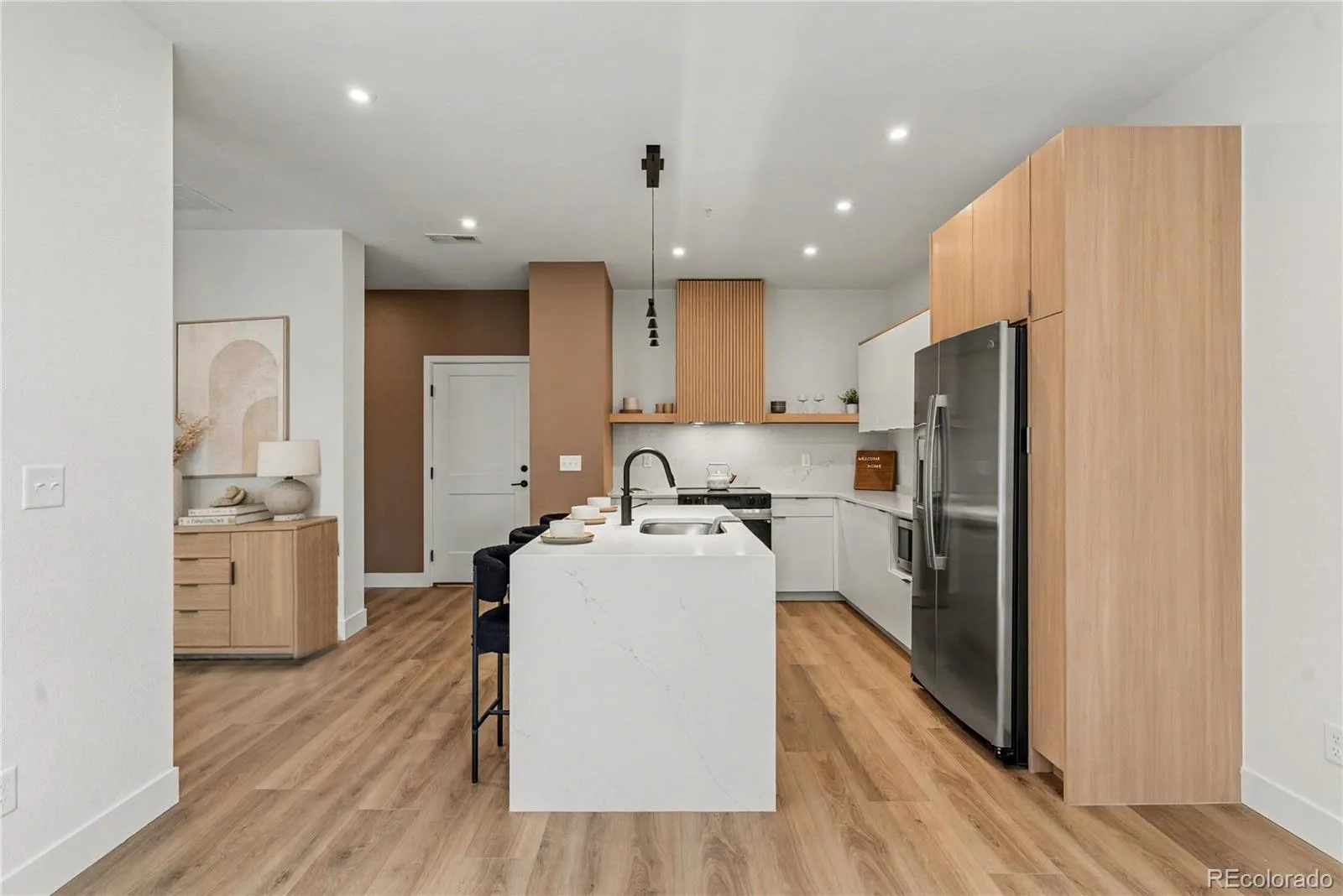 Limited-Time Incentive: Contract by March 31 and take advantage of a special financing opportunity with rates as low as 3.99% for the first year and 4.99% for the remaining 30 years. Experience new construction living in Downtown Westminster, featuring restaurants, parks, retail, entertainment, and community events. This stunning townhome offers 2 bedrooms, 3 bathrooms, and 1,660 square feet of modern design, low-maintenance convenience, and a builder warranty for peace of mind. Enjoy new home efficiency with central A/C and a heat pump, offering year-round comfort, energy efficiency, and potential utility savings. The open-concept layout is ideal for entertaining or relaxing, with a stylish kitchen featuring sleek finishes, ample cabinetry, premium appliances, and an eat-in bar that flows into the living space. Both bedrooms feature en suite bathrooms and large closets, offering comfort, privacy, and excellent storage. The spacious primary suite also includes a partitioned area perfect for a home office, reading nook, or workout space, with French doors that bring in natural light and create an airy connection to the outdoors. An oversized attached 2-car garage adds convenience and extra storage, while the patio and green space offer a peaceful outdoor retreat. A low-cost HOA includes grounds keeping and snow removal. A metal roof adds long-term durability and protection against Colorado’s changing weather. Located near parks, shopping, dining, and major commuter routes, this home offers urban accessibility and everyday comfort in one of Westminster’s most vibrant growing areas. Photos are of a representative unit. Actual floorplans, finishes, features, options, and details may vary by unit. Information in this listing is deemed reliable but not guaranteed. Buyer to verify all information.