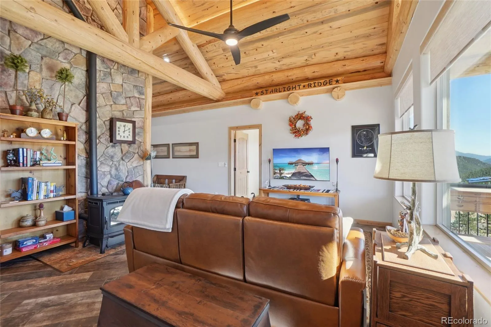 Your fully furnished mountain retreat awaits! A seamless blend of rustic charm and modern comfort, this stunning 2,032 sq ft hybrid-log home sits on 2.7 peaceful acres in Bailey and showcases exceptional craftsmanship with solid-core knotty alder doors, porcelain plank flooring, and a mix of Lodgepole Pine, Englewood Spruce, and reclaimed Colorado timber. Sun-filled south-facing windows frame sweeping 180-degree mountain views, while the Harman digital pellet stove creates a cozy gathering space at elevation. The beautifully designed kitchen features GE stainless steel appliances, abundant cabinetry, granite counters, a spacious island, and dual pantries, perfect for both cooking and entertaining. Three versatile bedrooms, including one with a loft, pair with thoughtfully updated baths featuring detailed tilework, and the primary suite offers a luxurious five-piece layout complete with a walk-in shower, vessel sinks, and a cast-iron clawfoot tub. Outdoor living is elevated with Trex decking, beetle-kill tongue-and-groove ceilings, powder-coated post caps, recessed lighting, and hot tub wiring under the deck, ideal for embracing Colorado’s breathtaking scenery. The walk-out lower level provides added flexibility for a family room, gym, office, or creative studio, and the utility room is equipped with a water softener. Additional features include a 50-gallon gas water heater, central heating and A/C, exterior security lighting, a dedicated laundry room with washer/dryer, RV parking, and an oversized heated garage with 16′ doors and a workshop area. With quick access to Hwy 285, nearby conveniences, local dining, and endless outdoor recreation, this fully furnished Bailey gem delivers true Colorado mountain living at its finest. A home warranty is included, providing added protection and peace of mind for the next owner.