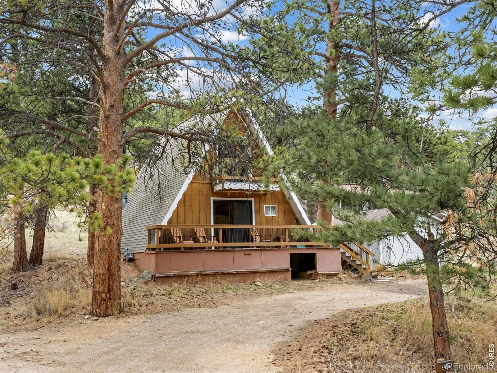 Charming vintage Estes Park A-frame with an active short-term rental license-an incredible opportunity for both investment and personal getaway. This cozy 2-bedroom, 1-bath cabin sits on a .20-acre lot and includes a detached garage, perfect for all your mountain gear and storage needs. Ideally located near Rocky Mountain National Park and the YMCA of the Rockies but still close enough to downtown Estes Park. This property offers easy access to endless outdoor adventures. Relax on the deck and take in the peaceful surroundings while watching frequent wildlife visitors-perfect for morning coffee or unwinding after a day of hiking. Inside, the warm and inviting wood stove quickly heats the entire cabin, creating the perfect mountain retreat atmosphere. The home has a strong rental history on VRBO and is being sold turnkey, allowing you to seamlessly continue operations just in time for the busy summer season. Enjoy the cost savings of well and septic while still benefiting from modern conveniences like high-speed internet and natural gas for cooking and heating. Active rental-please allow 24 hours’ notice for showings to avoid conflicts with guests.