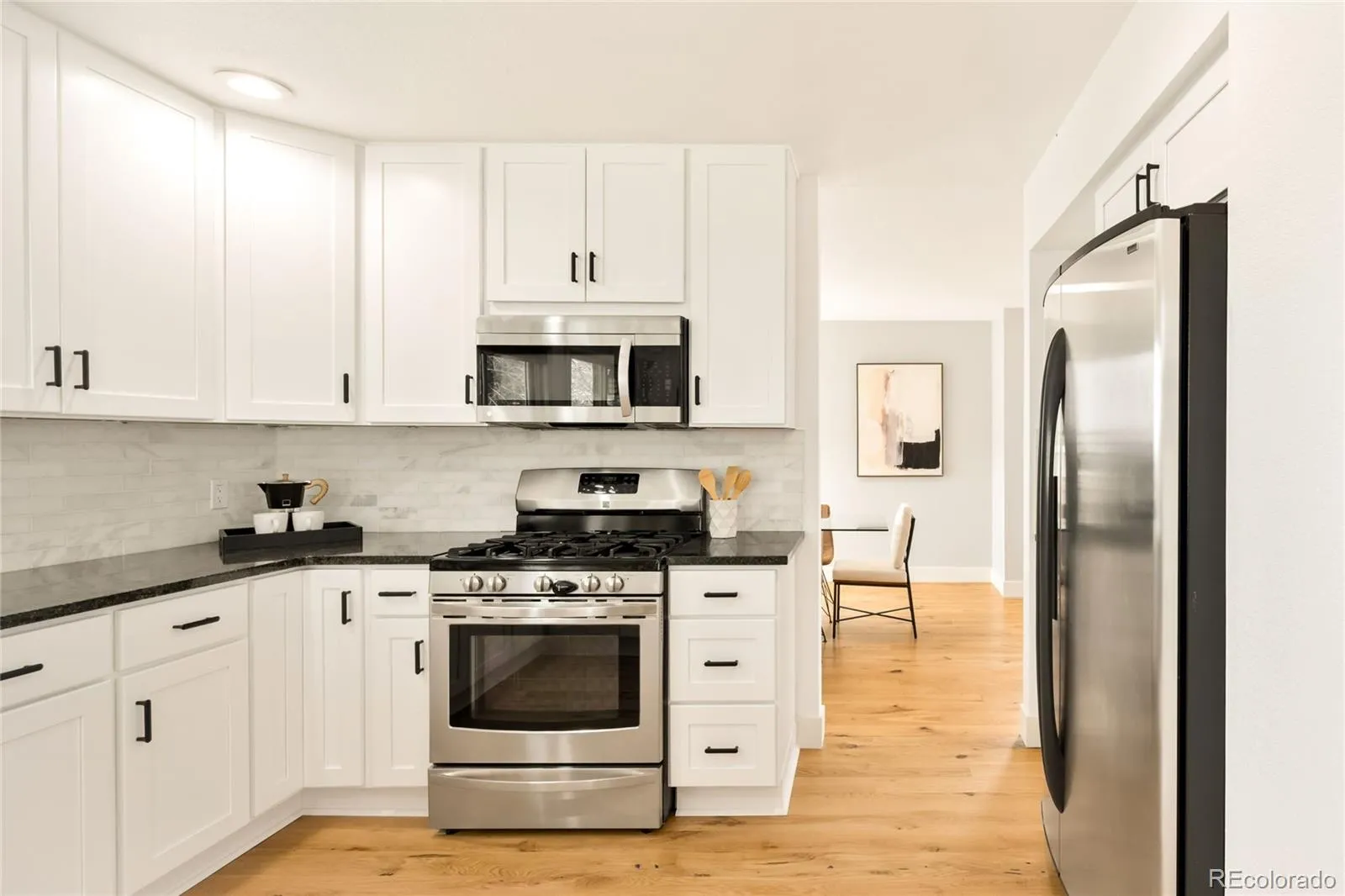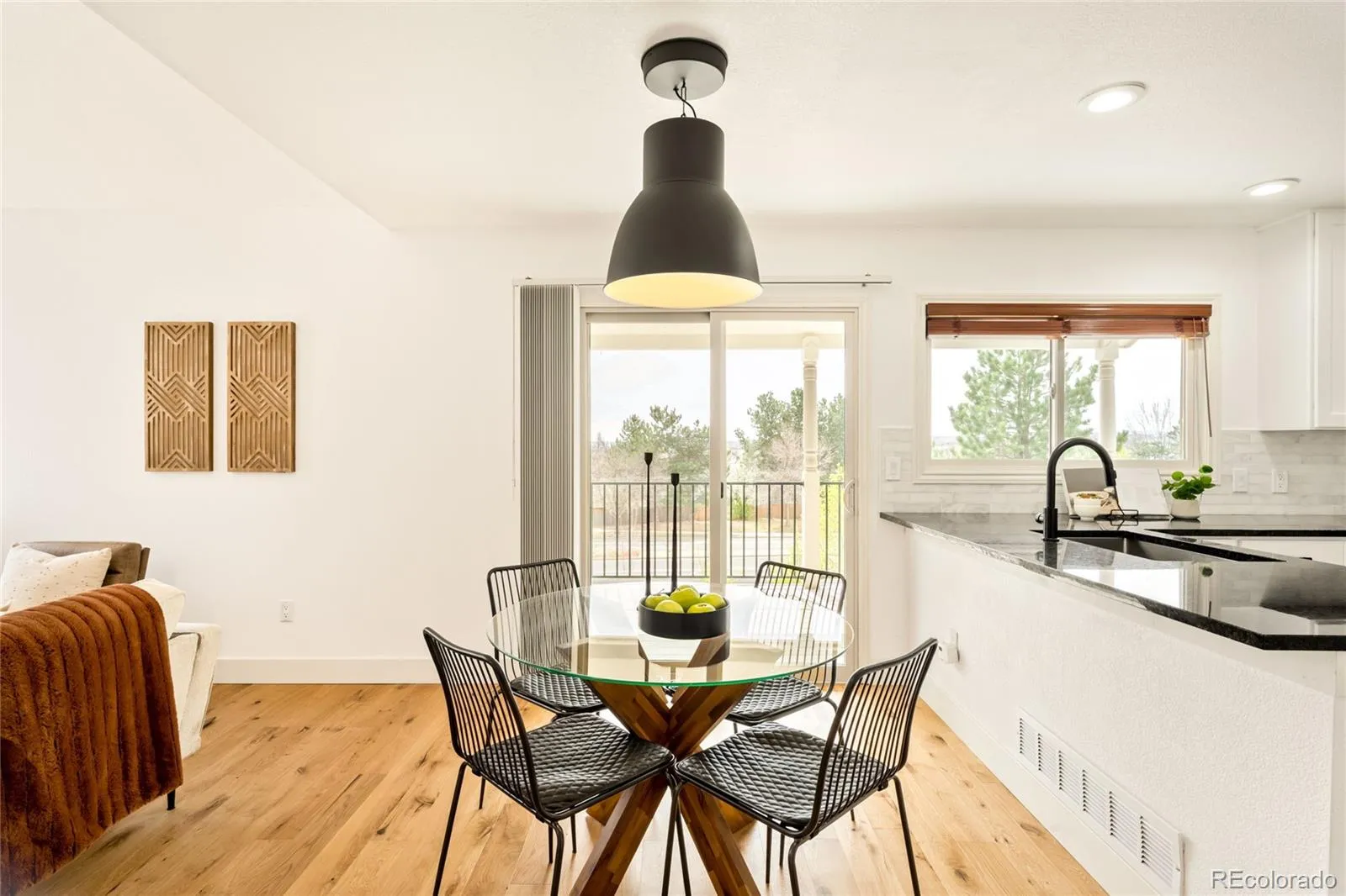 This updated Centennial home captures the charm of Old Town Louisville, just moments from Boulder and outdoor recreation. A striking two-story entry with a statement staircase welcomes residents inside, where vaulted ceilings and abundant natural light create an airy, inviting atmosphere. The main living area is anchored by a tiled fireplace, flowing seamlessly into a bright dining space. The newly refreshed kitchen shines with new cabinetry, countertops, and stainless steel appliances. Sliding glass doors open to a covered deck — ideal for indoor-outdoor living. Upstairs, all bedrooms are thoughtfully situated, including a spacious primary suite with a serene five-piece bath. The walkout basement offers flexible, partially finished space ready for personalization. A dedicated laundry room adds daily ease. Outdoors, a large, private yard with a patio and raised garden beds provides a peaceful retreat. With new flooring updates and a prime location, this home is a standout opportunity.
